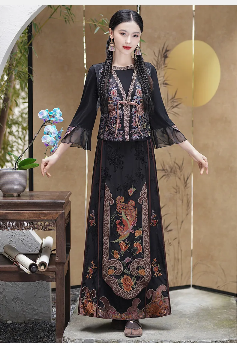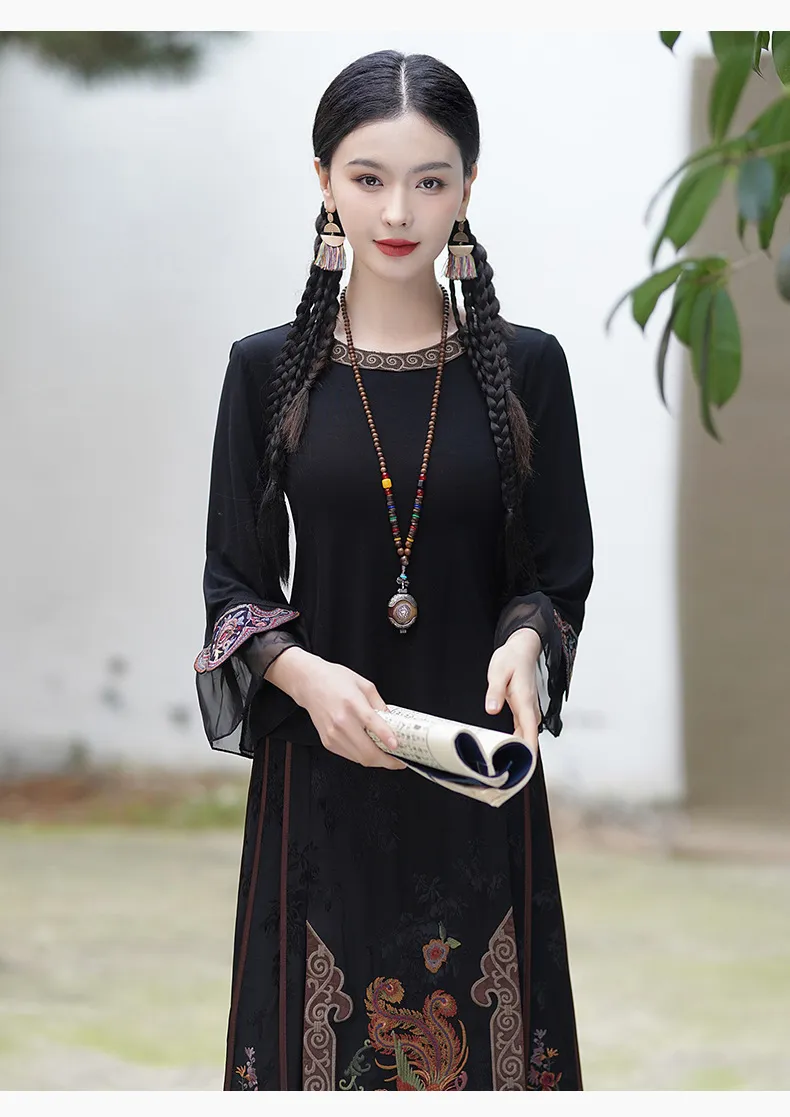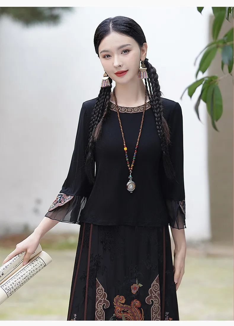 衣都精品- 新款民族風圓領繡花百搭顯瘦上衣