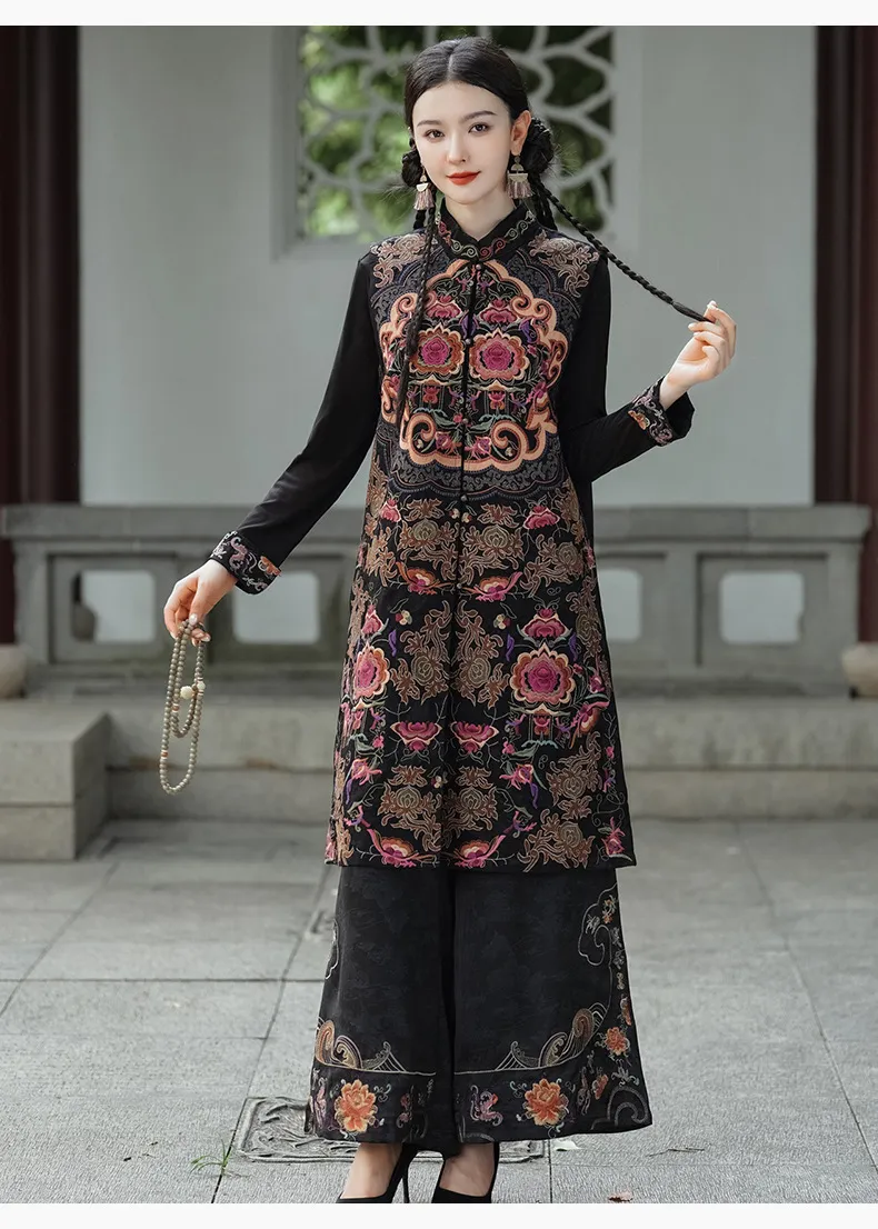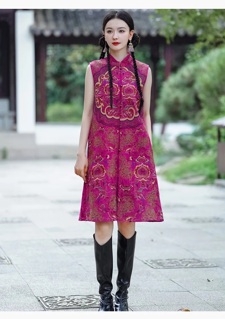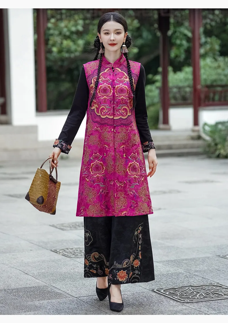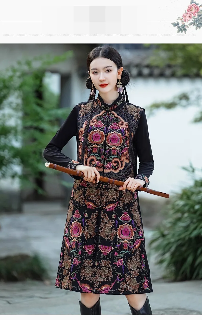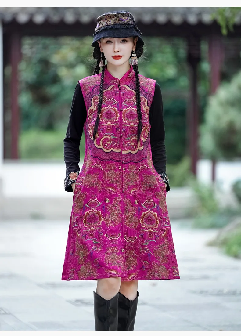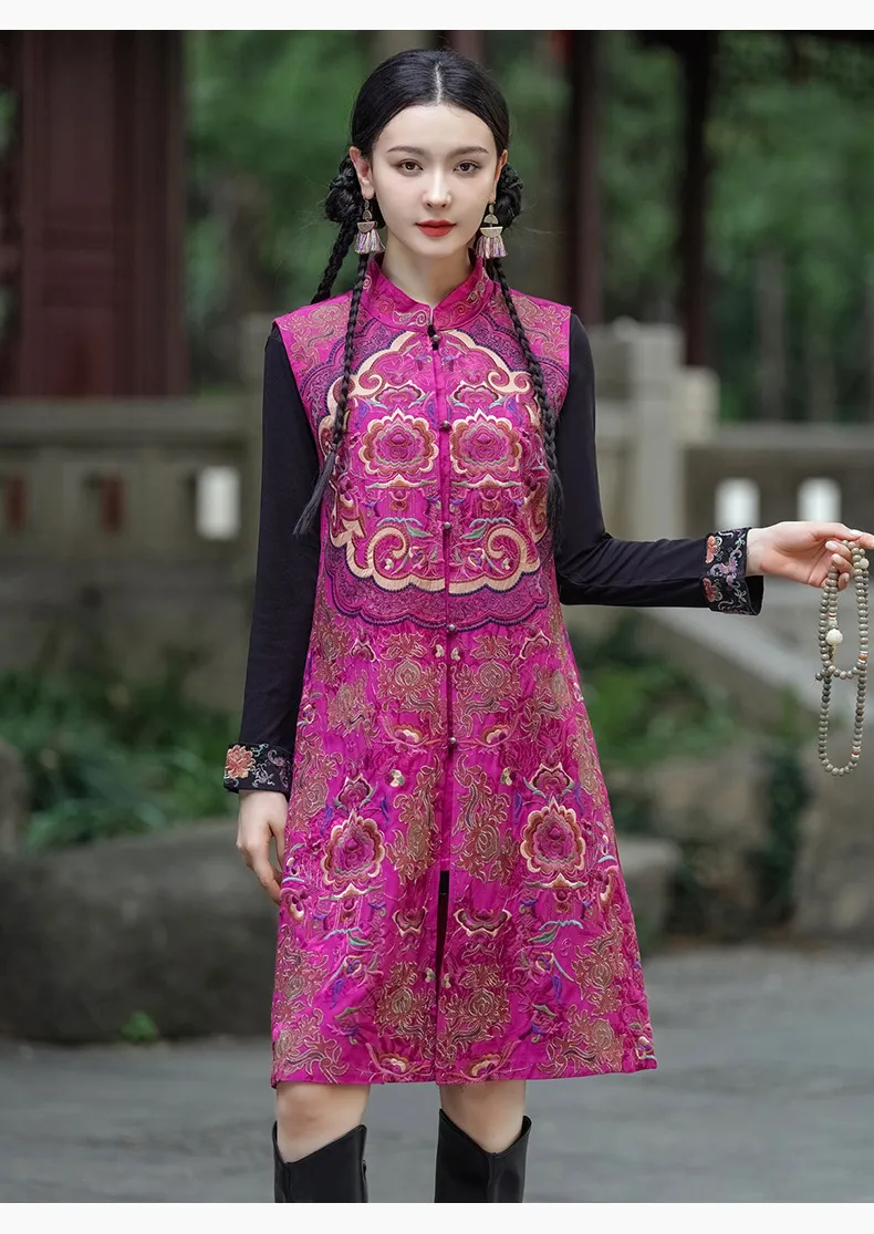 衣都精品- 新款民族風刺繡中長款無袖背心外套