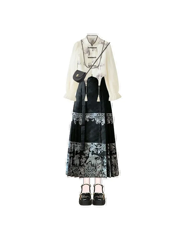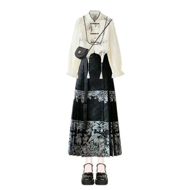 衣都精品- 新款中國風長袖襯衫+小個子馬面裙兩件式套裝
