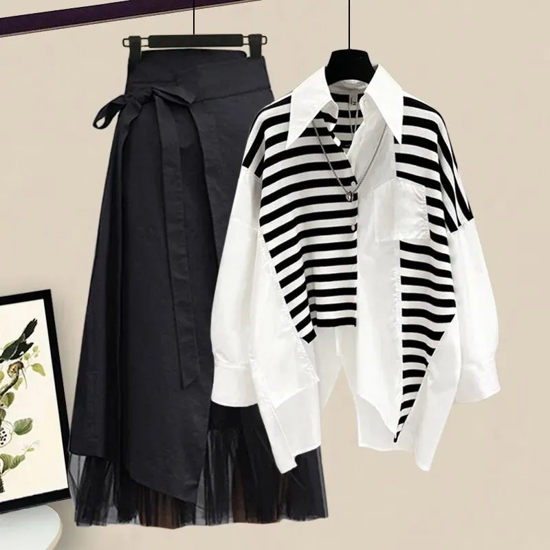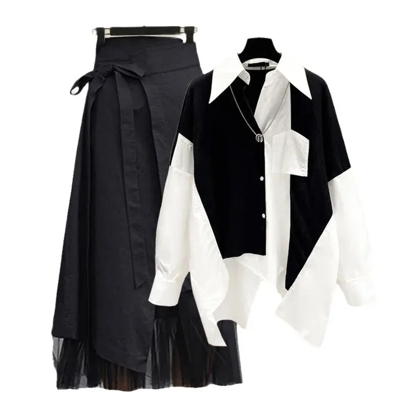 衣都精品- 新款中國風長袖襯衫+小個子馬面裙兩件式套裝