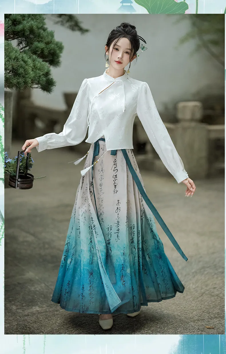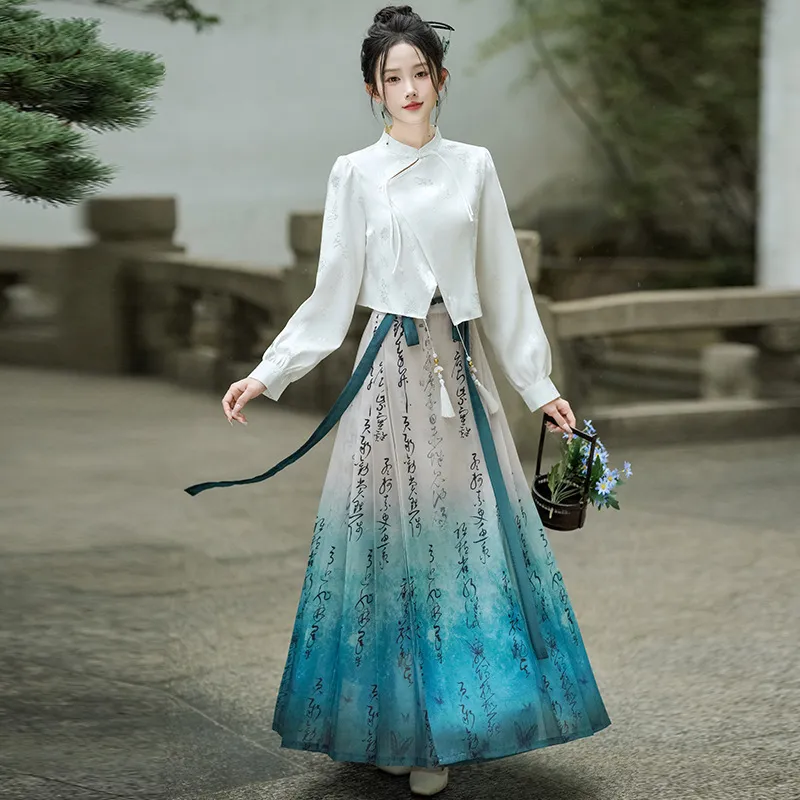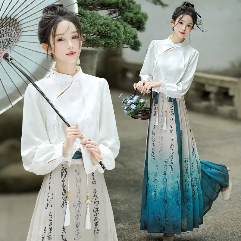 衣都精品- 新款中國風長袖襯衫+小個子馬面裙兩件式套裝