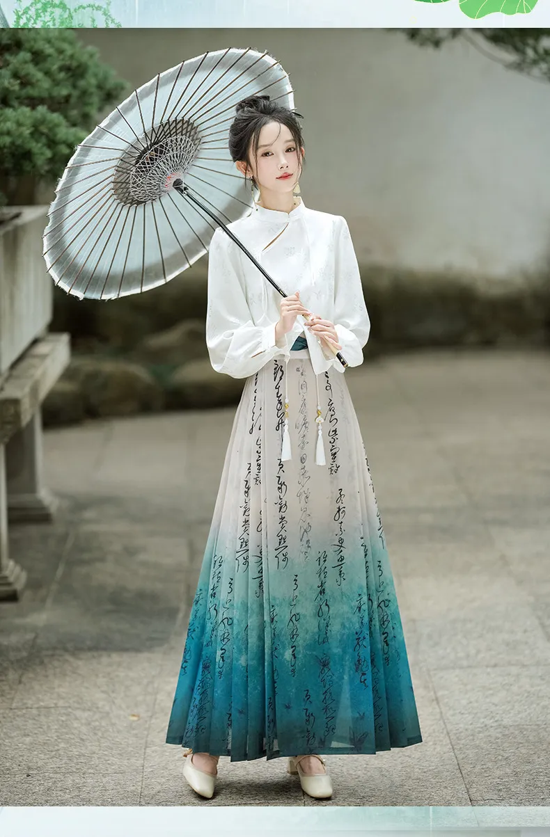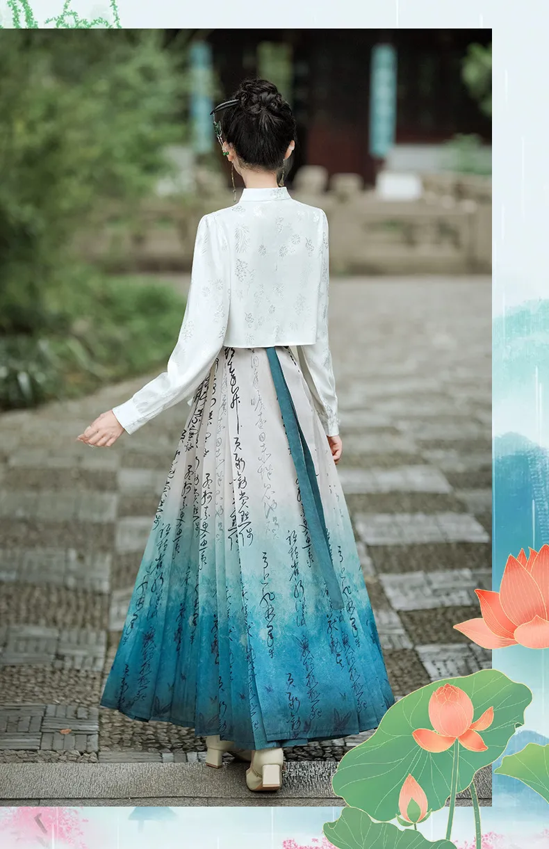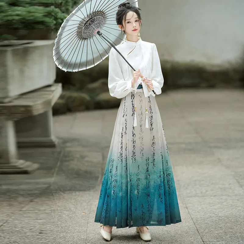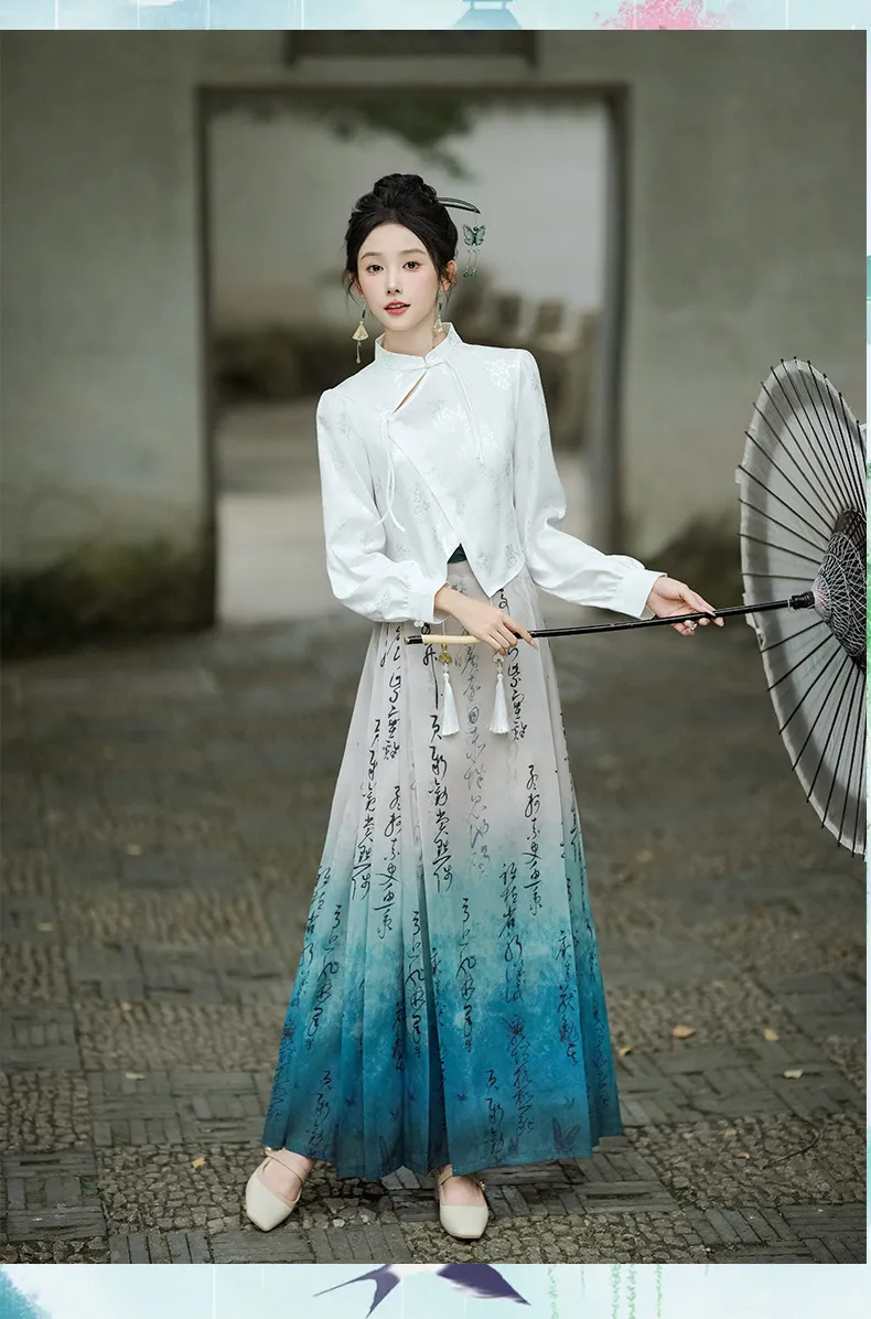衣都精品- 新款中國風長袖襯衫+小個子馬面裙兩件式套裝