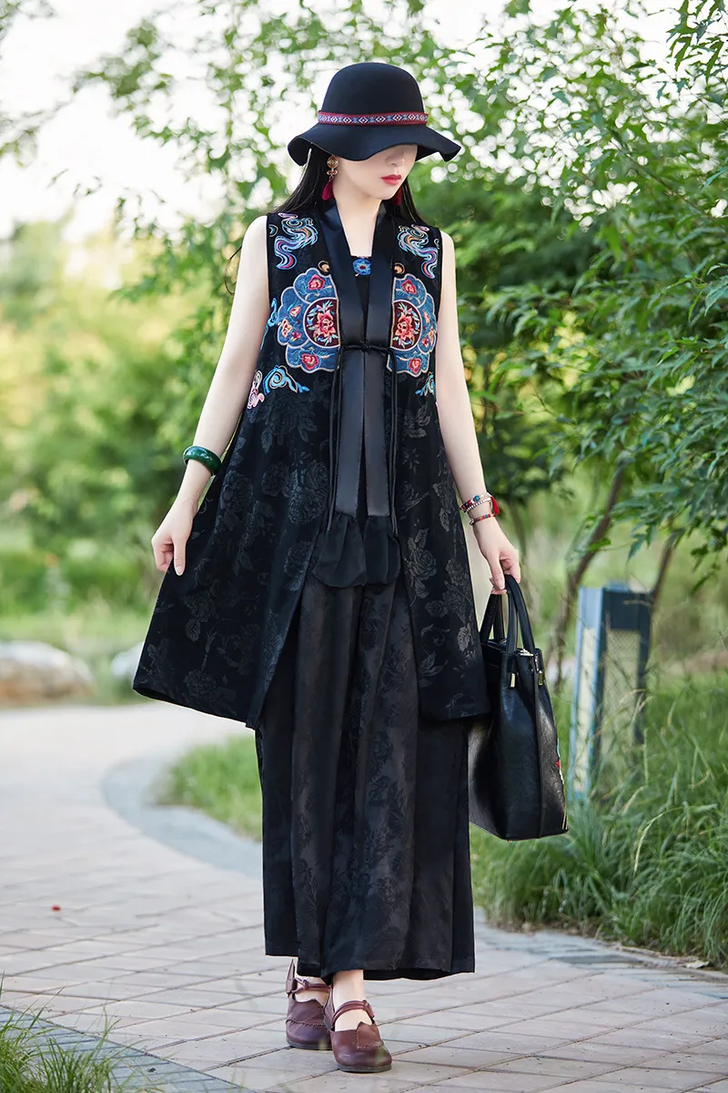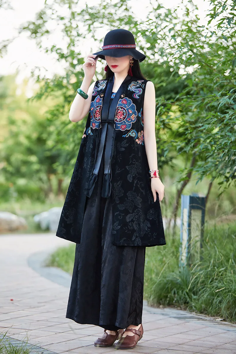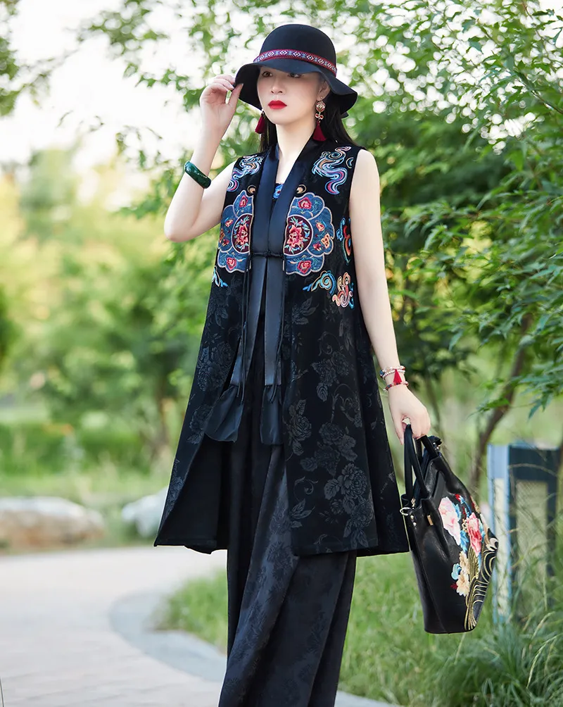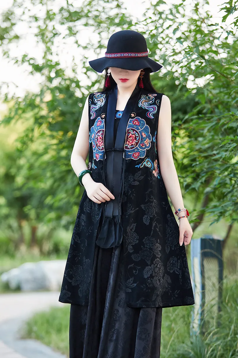 衣都精品- 新款民族風大碼復古繡花緞面馬甲外套