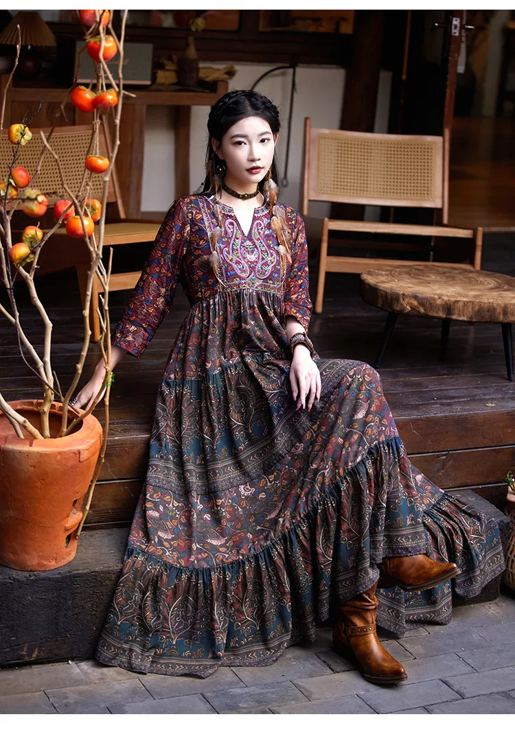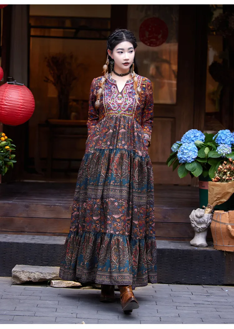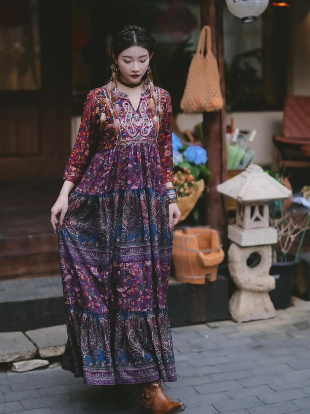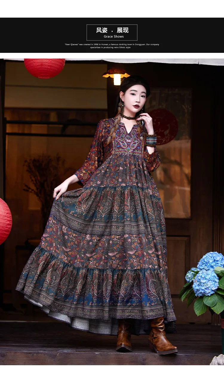衣都精品- 新款民族風氣質顯瘦寬鬆大碼印花連衣裙