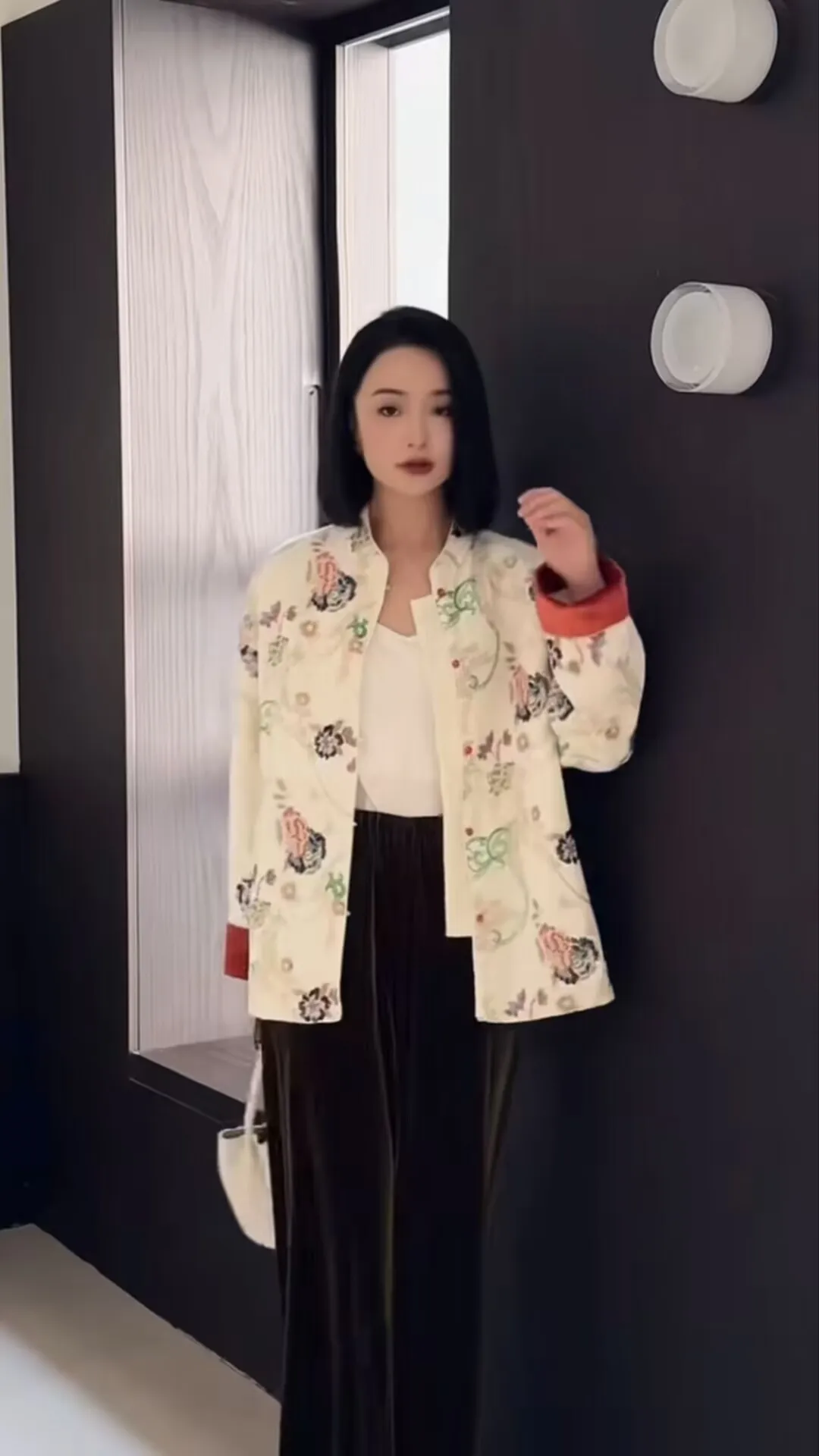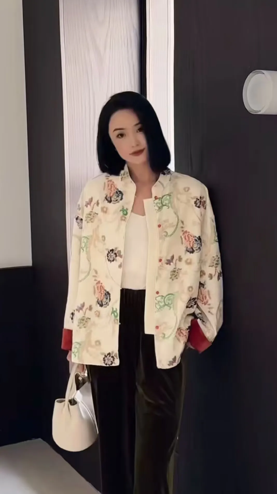衣都精品- 新款中國風斜襟V領刺繡改良長袖上衣