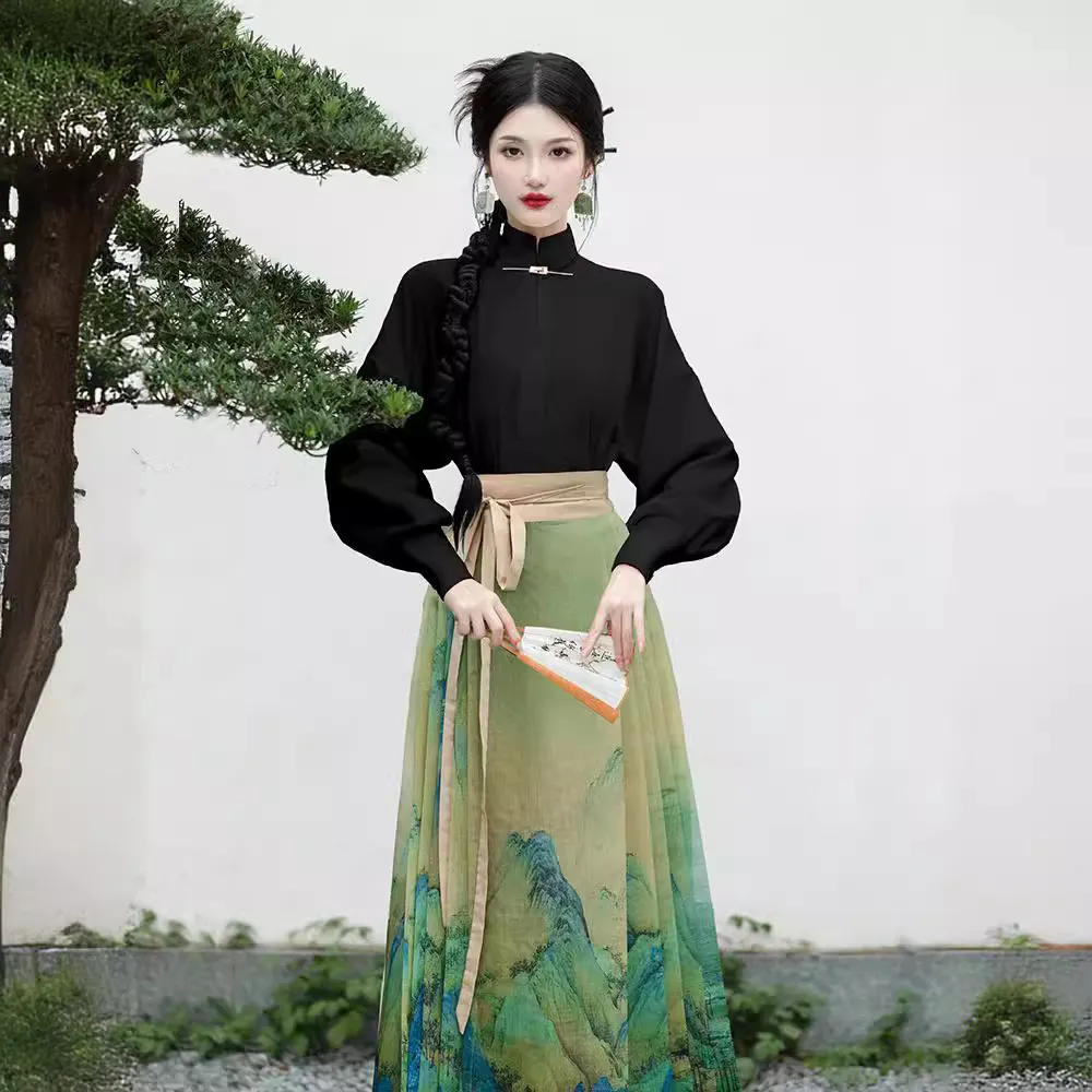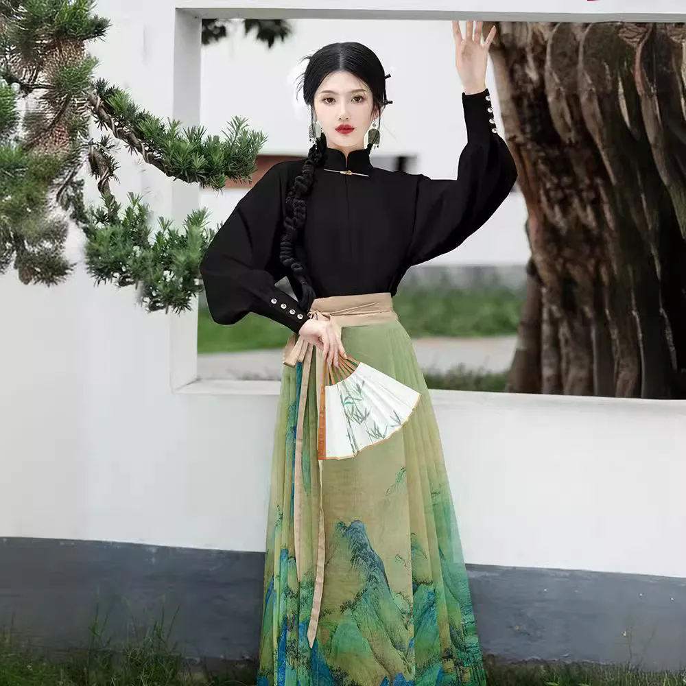 衣都精品- 新款中國風斜襟V領改良長袖上衣