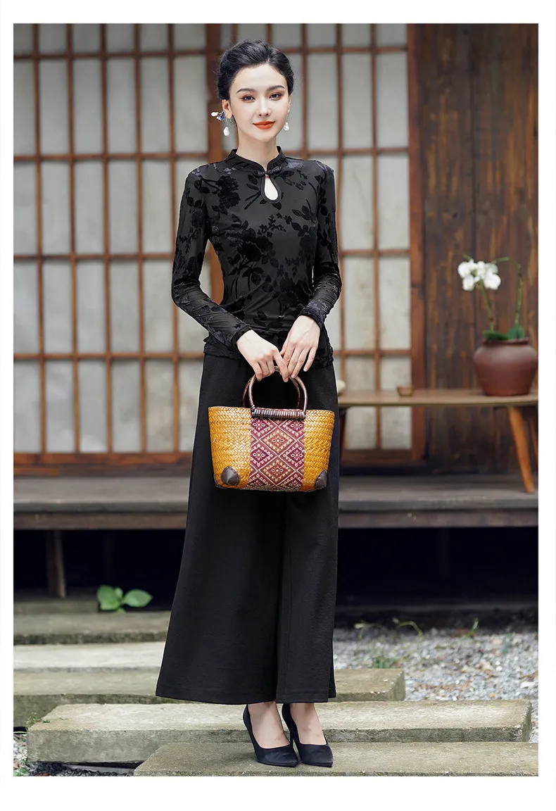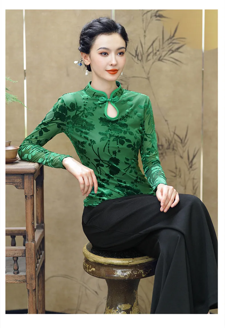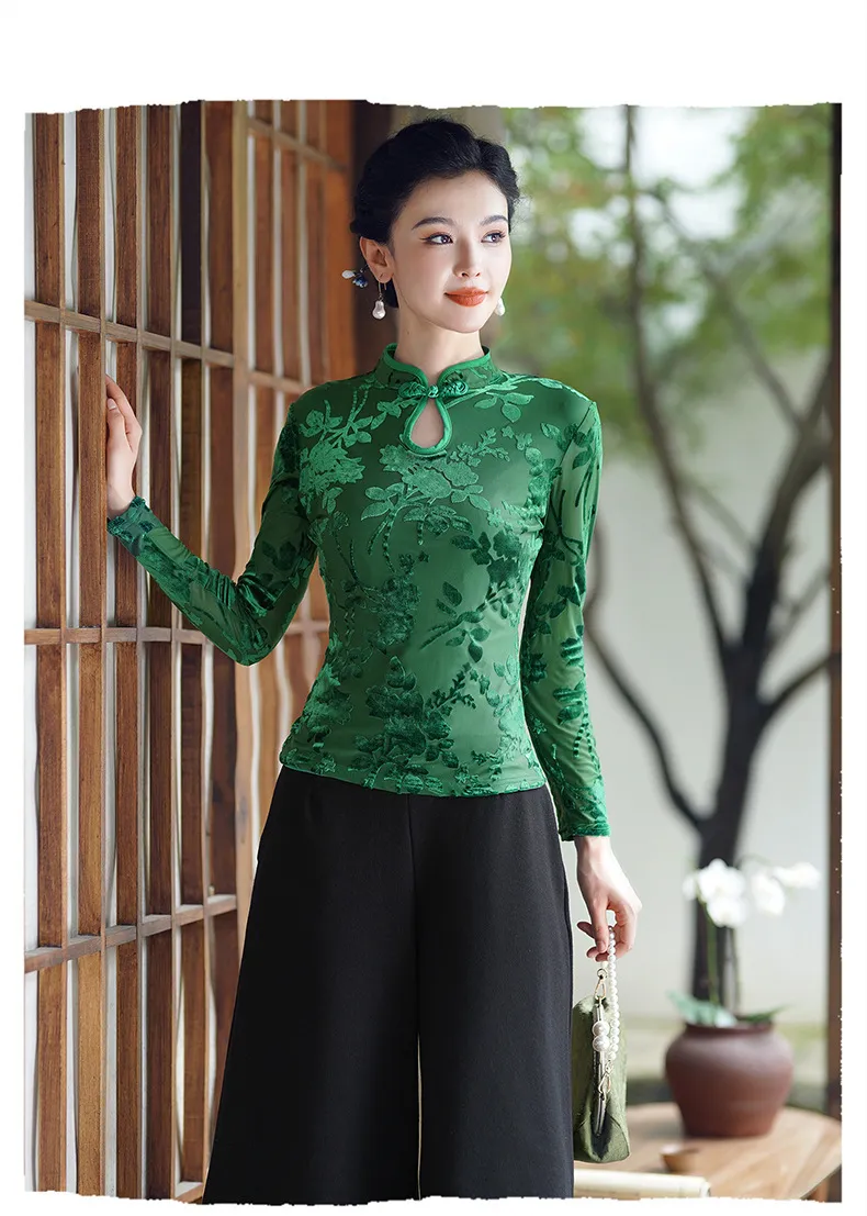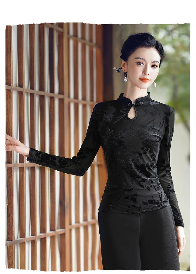 衣都精品- 新款中國風立領盤扣鏤空提花改良旗袍上衣