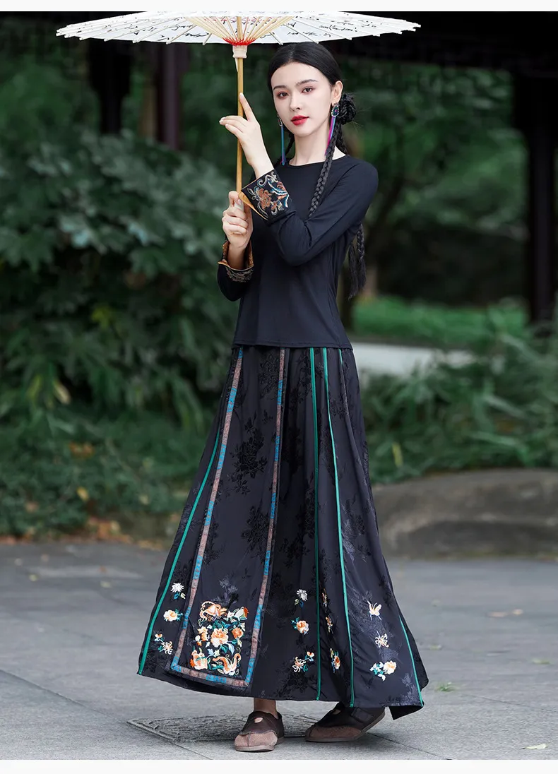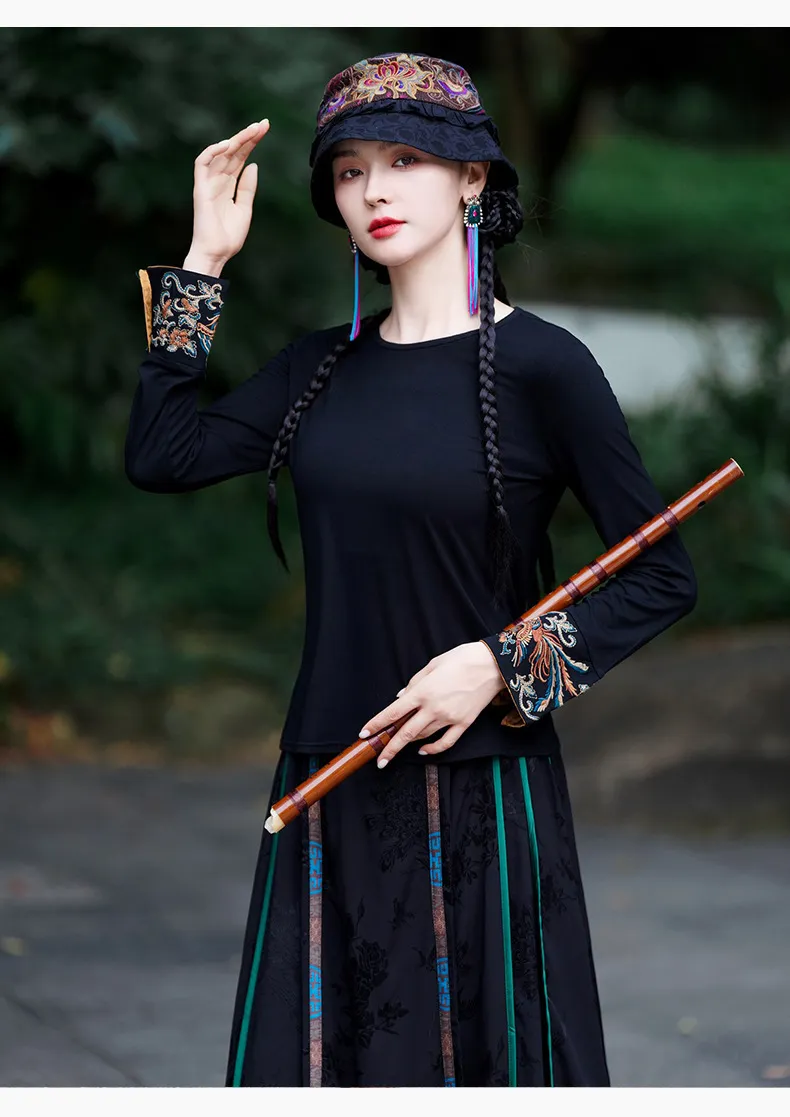 衣都精品- 新款民族風刺繡百搭顯瘦圓領上衣