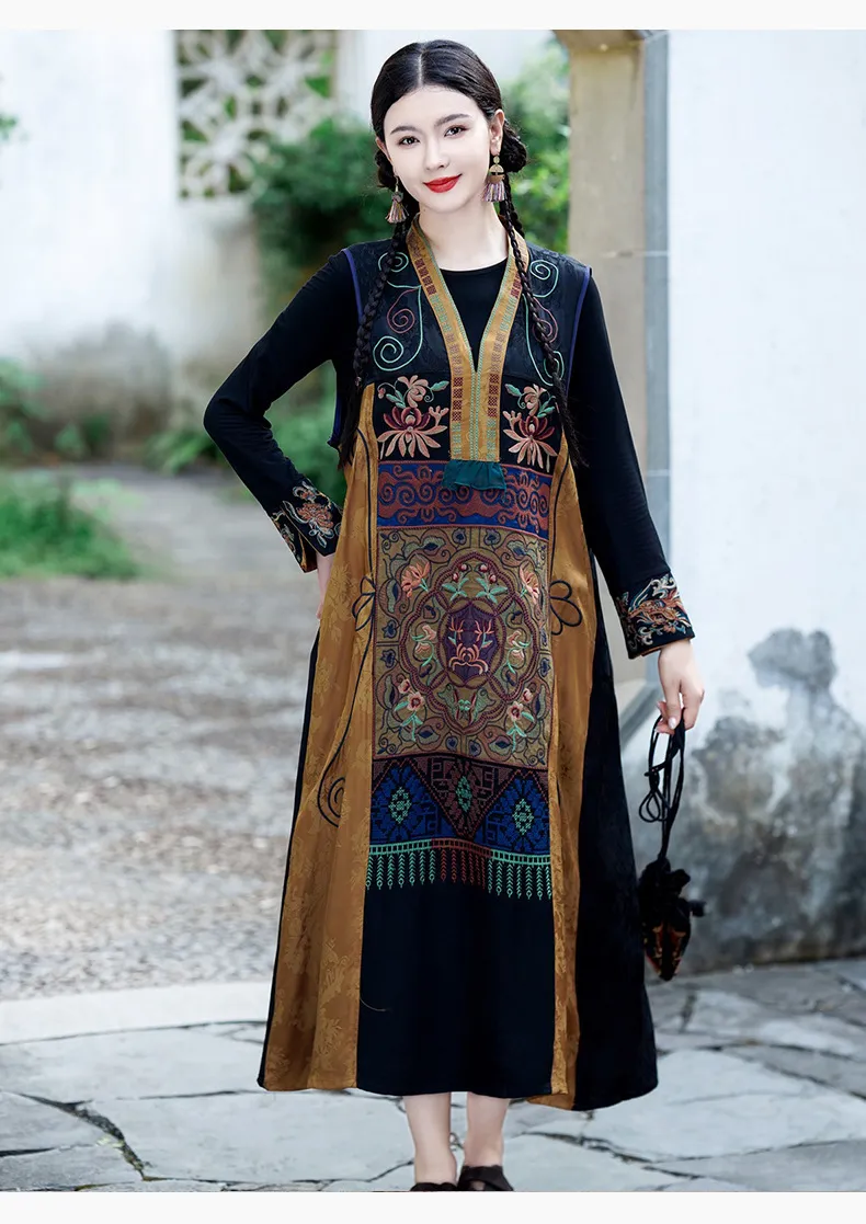 衣都精品- 新款民族風刺繡無袖背心連衣裙