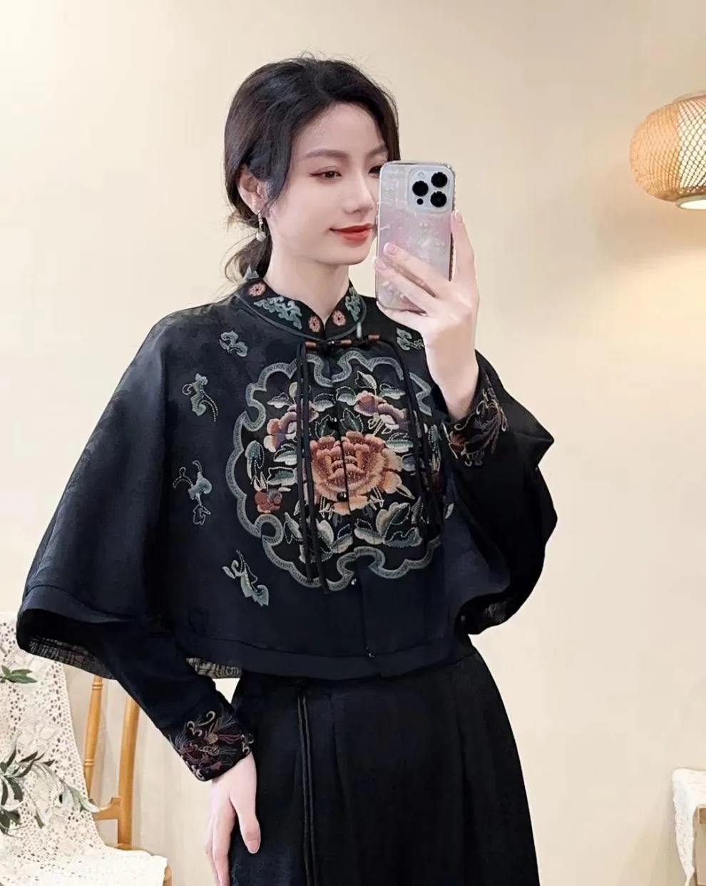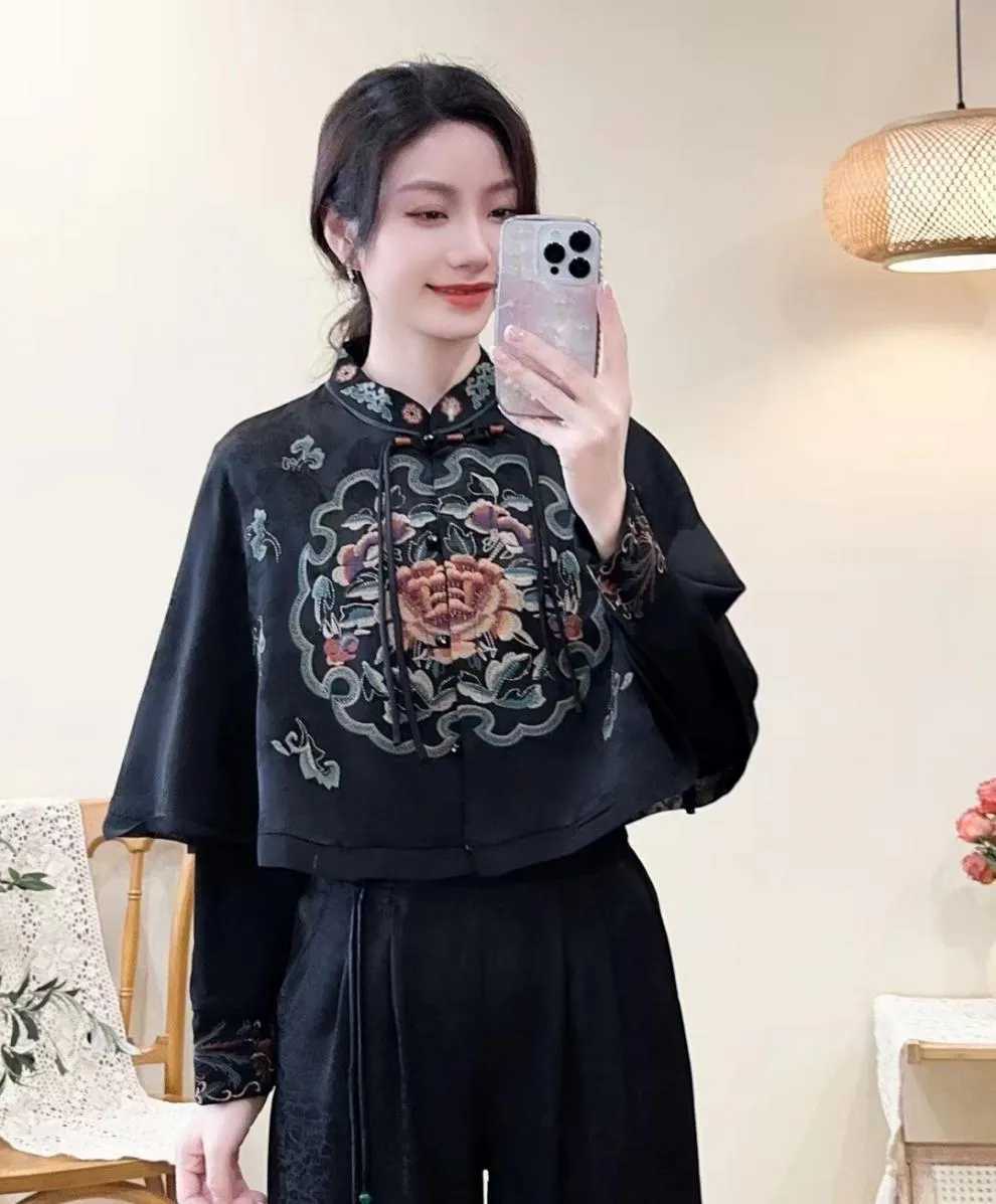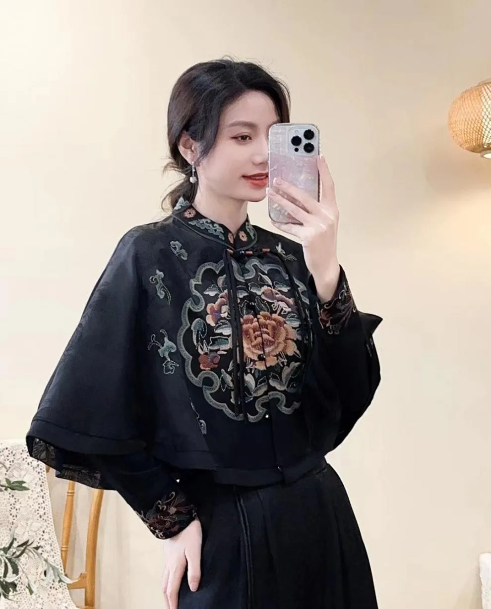 衣都精品- 新款民族風盤扣流蘇刺繡雲肩斗篷坎肩外套