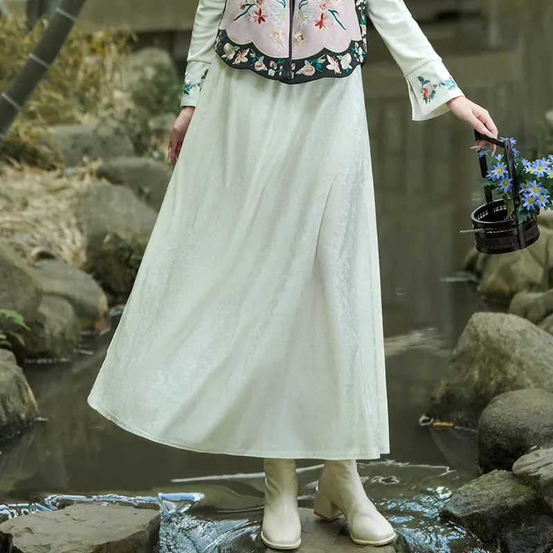 衣都精品- 新款民族風V領繡花莫代爾喇叭袖長袖上衣