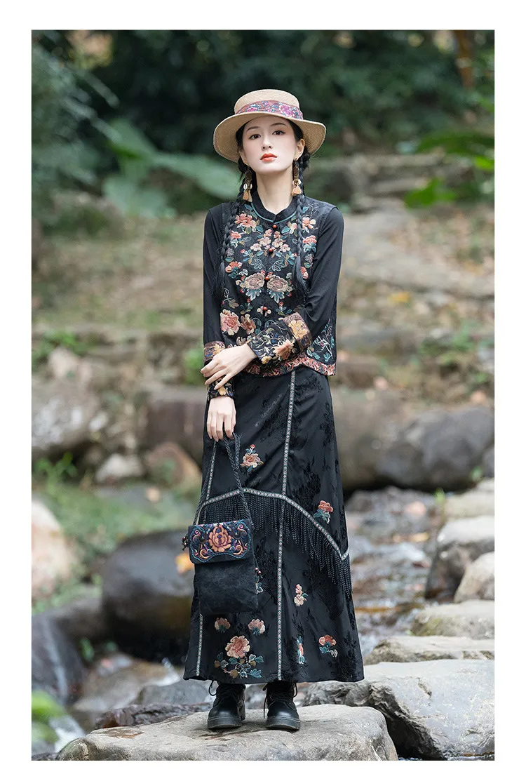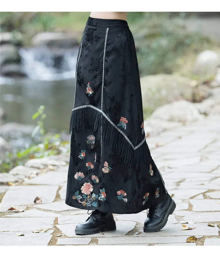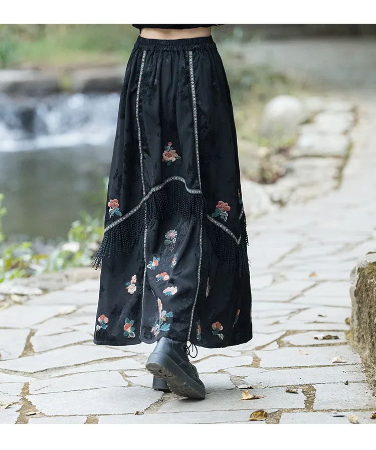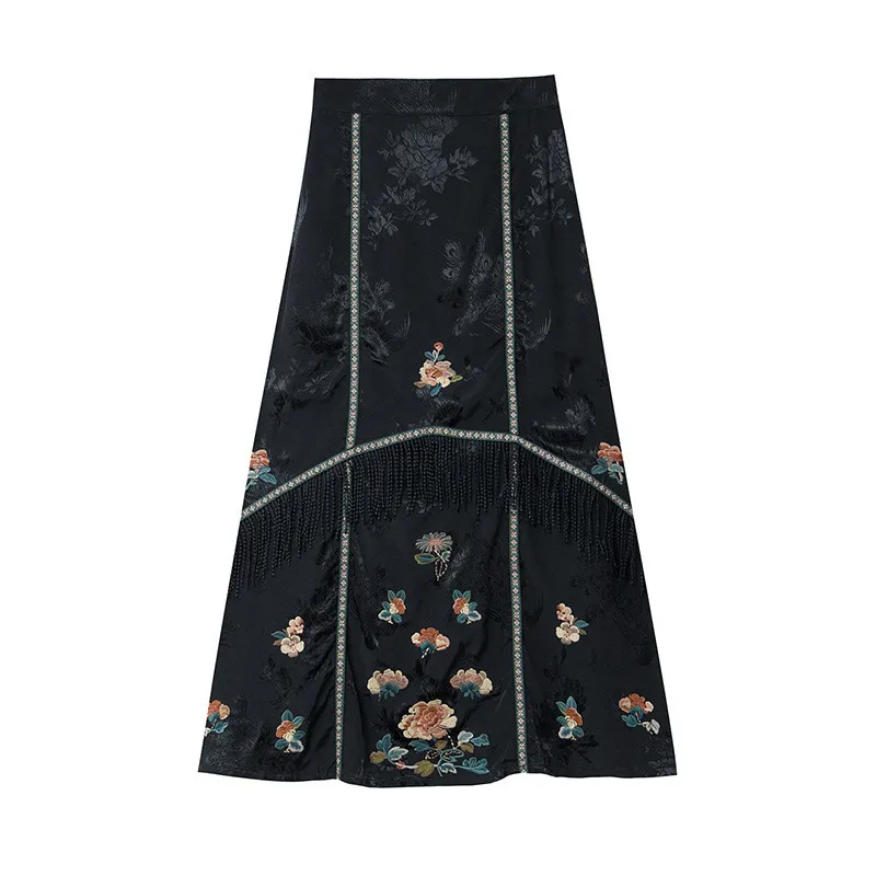 衣都精品- 新款民族風提花刺繡鬆緊腰流蘇半身裙