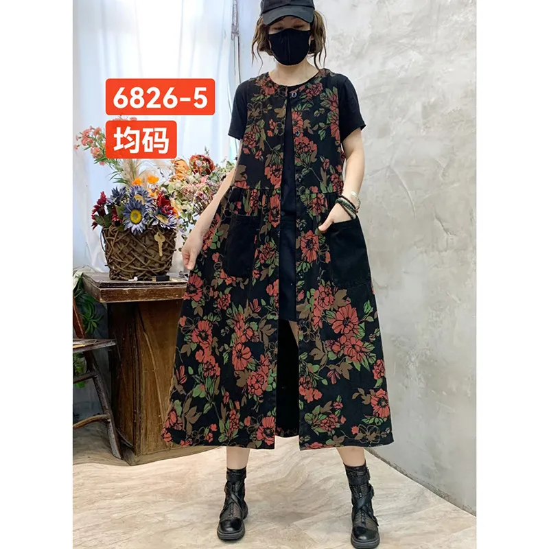 衣都精品- 新款圓領單排扣無袖長款休閒牛仔馬甲外套