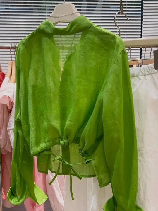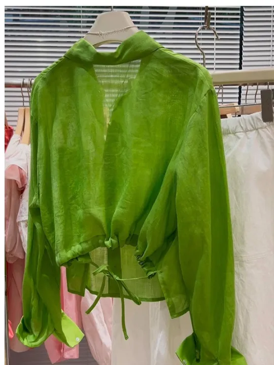 衣都精品- 新款綠色重磅天絲寬鬆百搭上衣