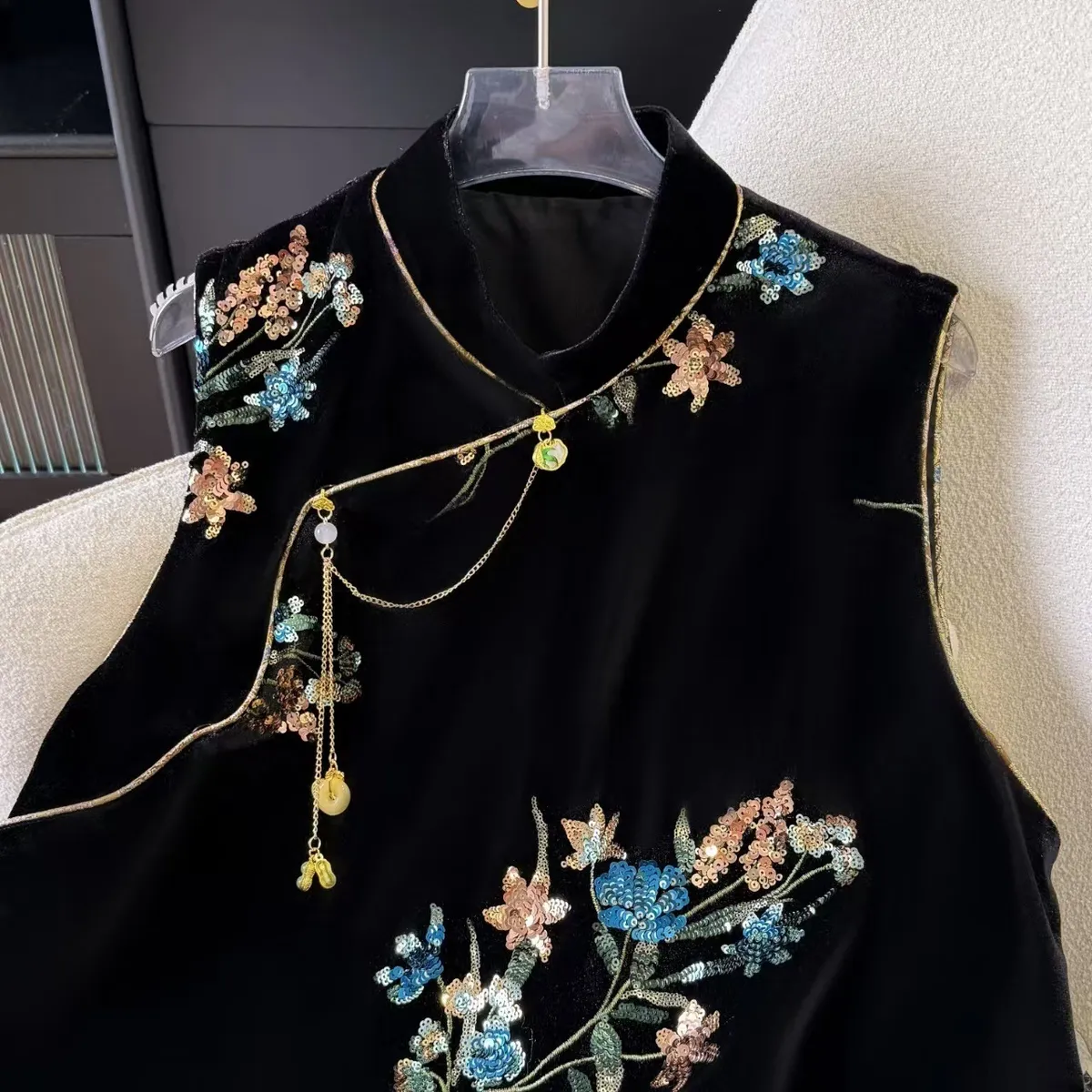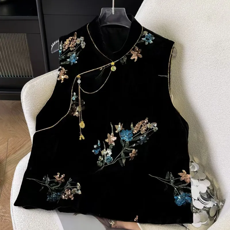 衣都精品- 新款中國風絲絨馬甲無袖外套