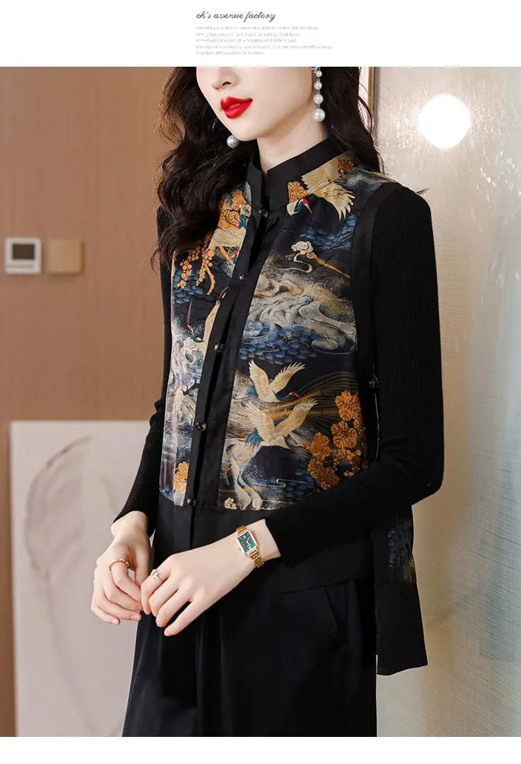 衣都精品- 新款高級醋酸拼接龍鳳刺繡上衣