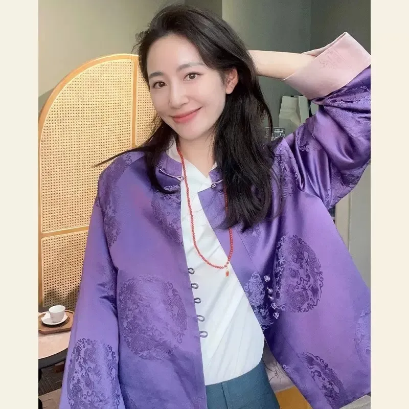 衣都精品- 新款中國風紫色提花盤扣短款外套