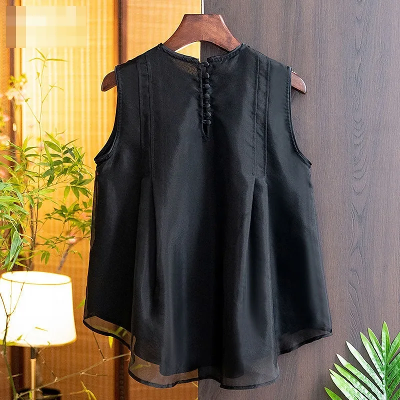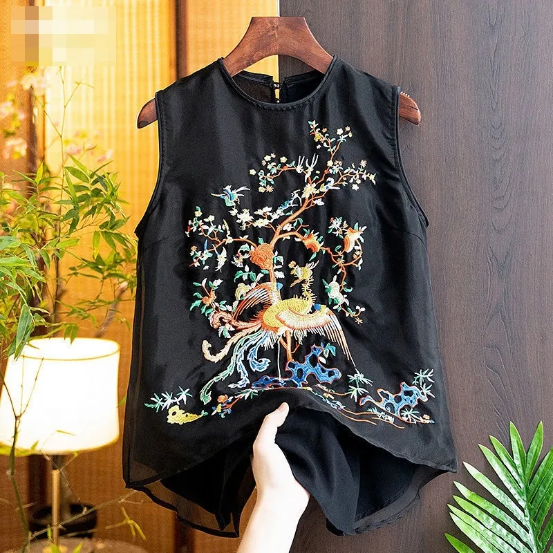 衣都精品- 新款重工刺繡仿真絲無袖馬甲上衣