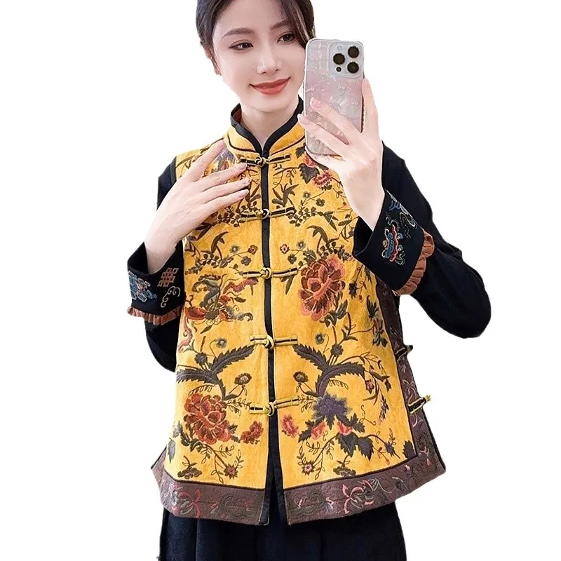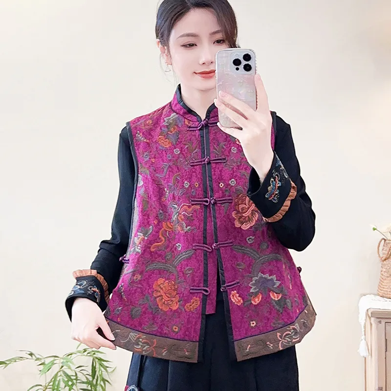 衣都精品- 新款民族風提花刺繡圓領斜襟盤扣坎肩外套