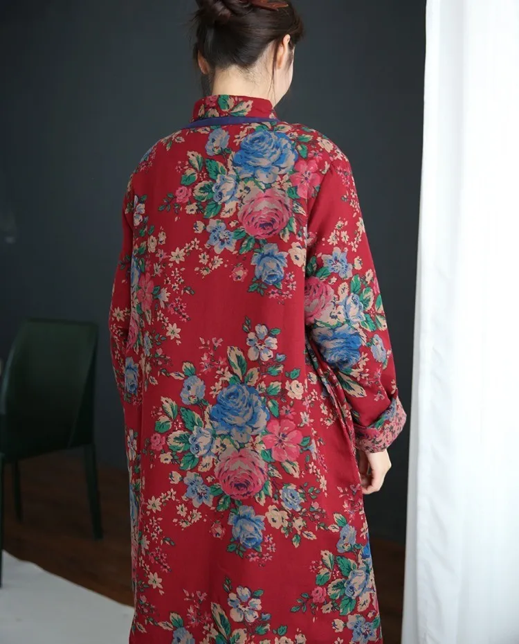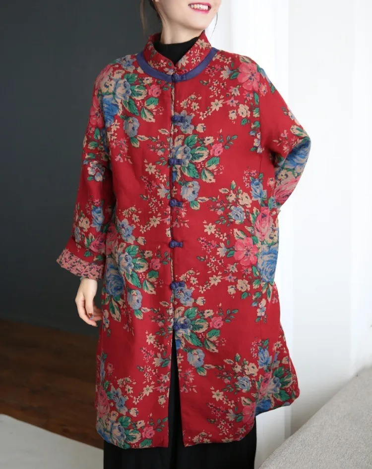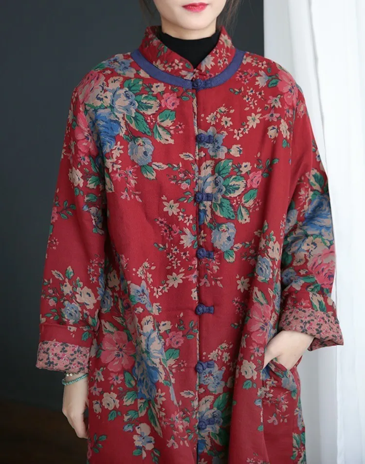 衣都精品- 新款復古印花加厚棉服民族風盤扣外套