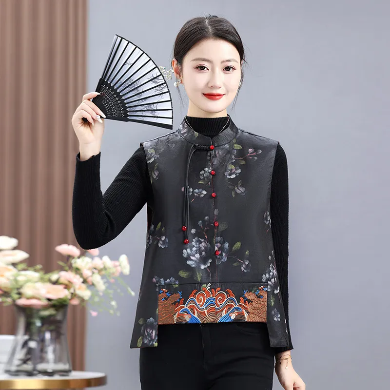 衣都精品- 新款民族風提花刺繡圓領斜襟盤扣坎肩外套
