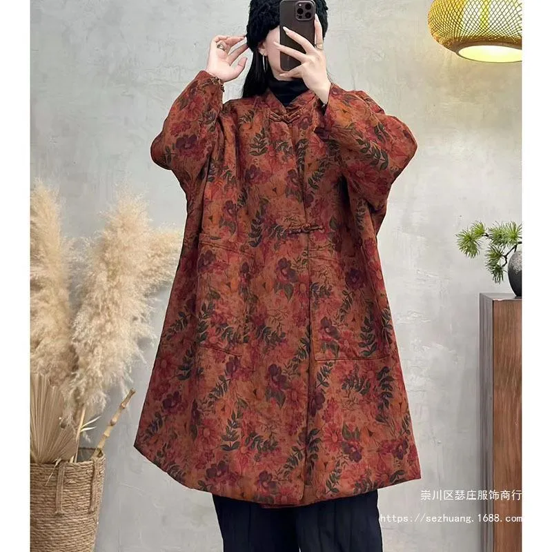 衣都精品- 新款復古印花加厚棉服民族風盤扣外套