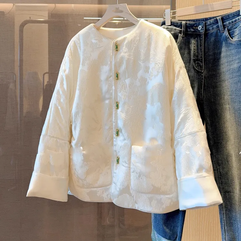 衣都精品- 新款中國風白色盤扣加厚棉服外套