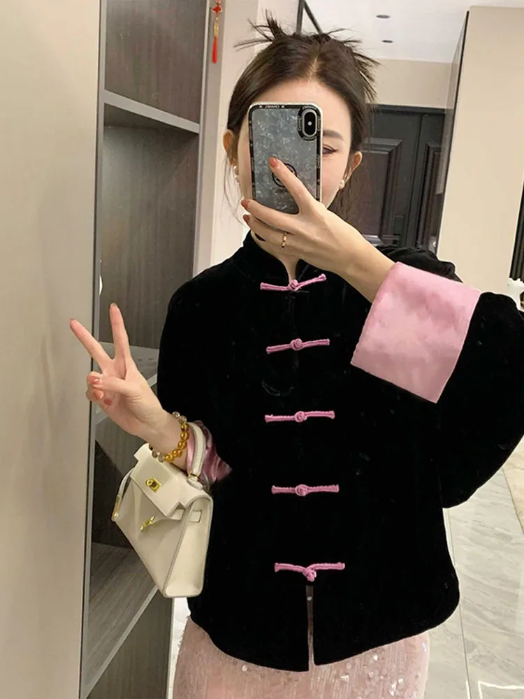 衣都精品- 新款中式改良唐裝加絨加厚旗袍馬甲外套