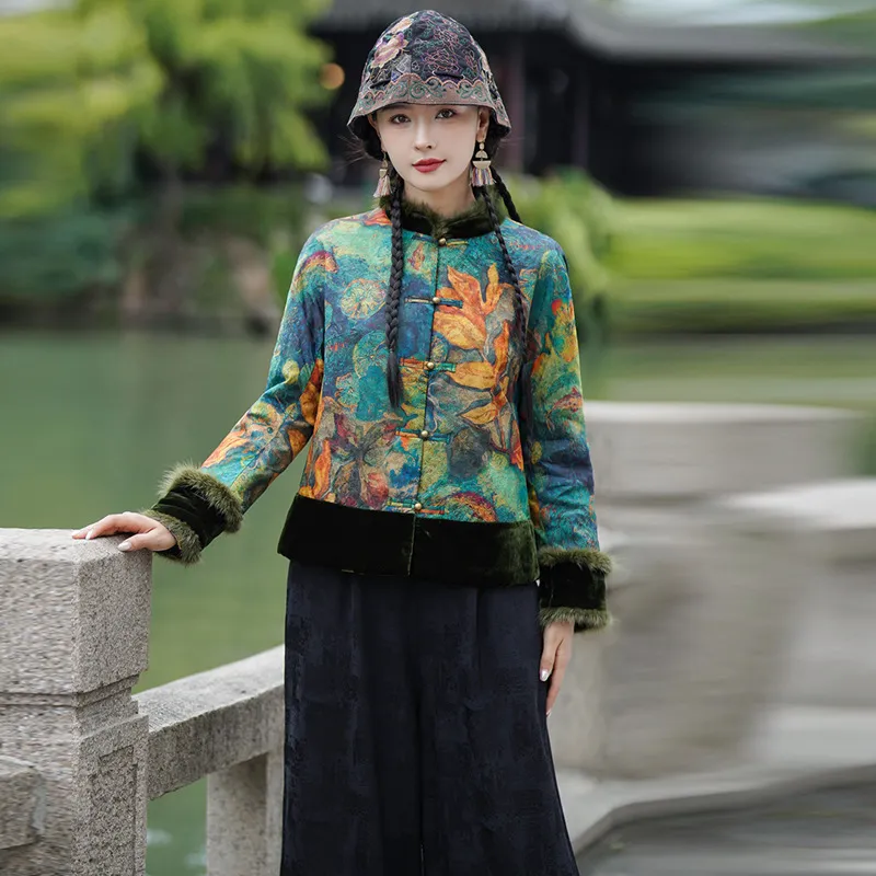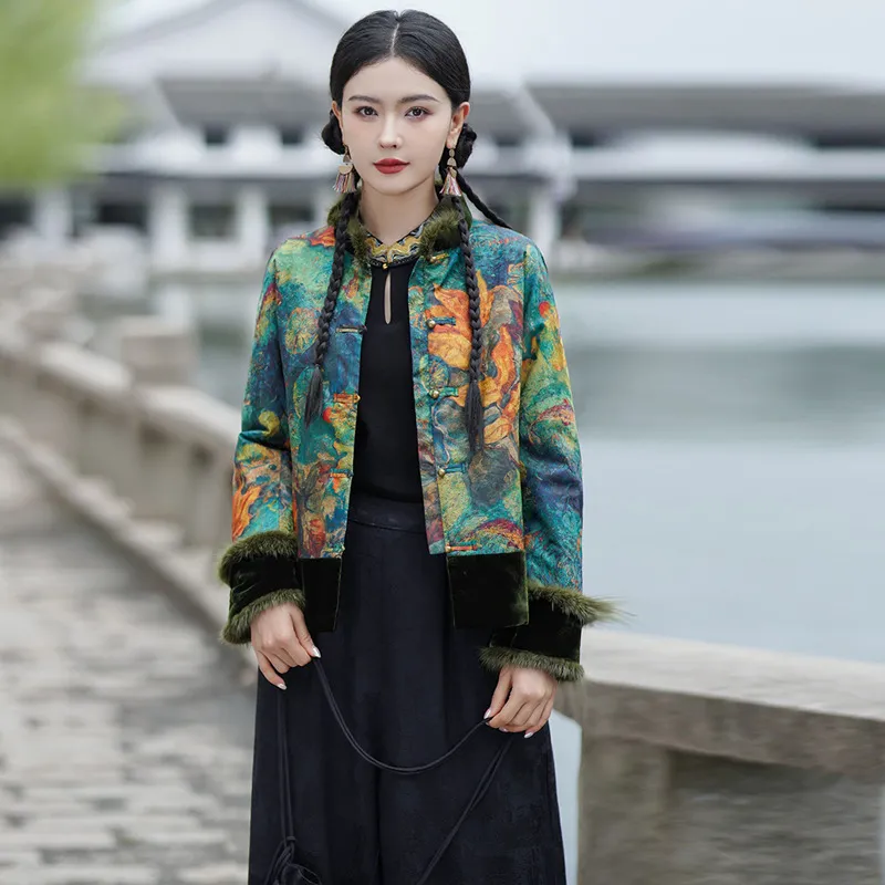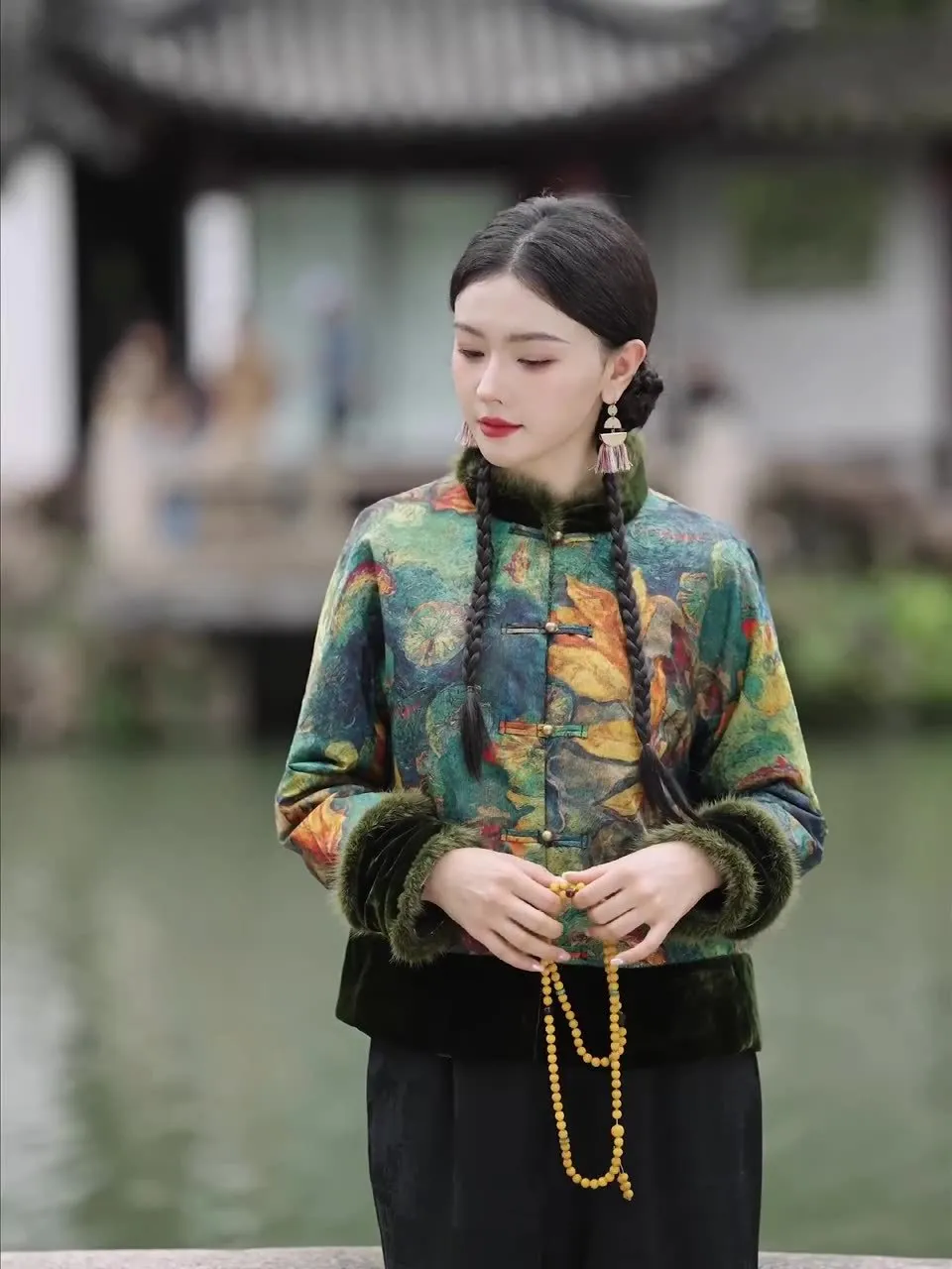 衣都精品- 新款中式復古立領真絲絨時尚短款外套
