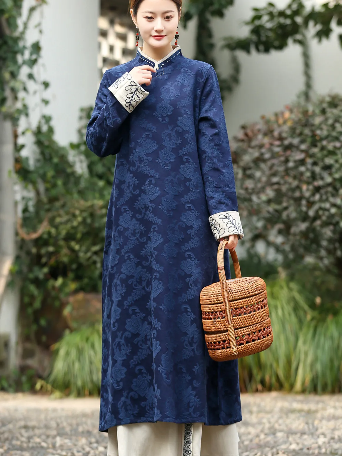 衣都精品- 新款中國風繡花盤扣立領提花連衣裙