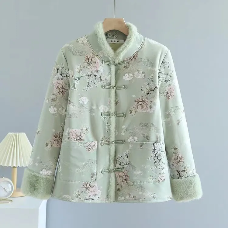 衣都精品- 新款時尚保暖大碼盤扣開衫毛領夾棉外套
