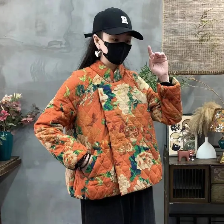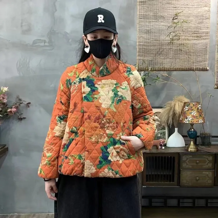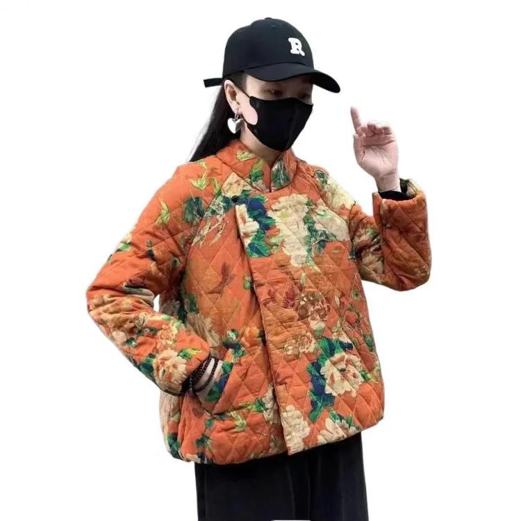 衣都精品- 新款時尚印花民族風寬鬆夾棉外套
