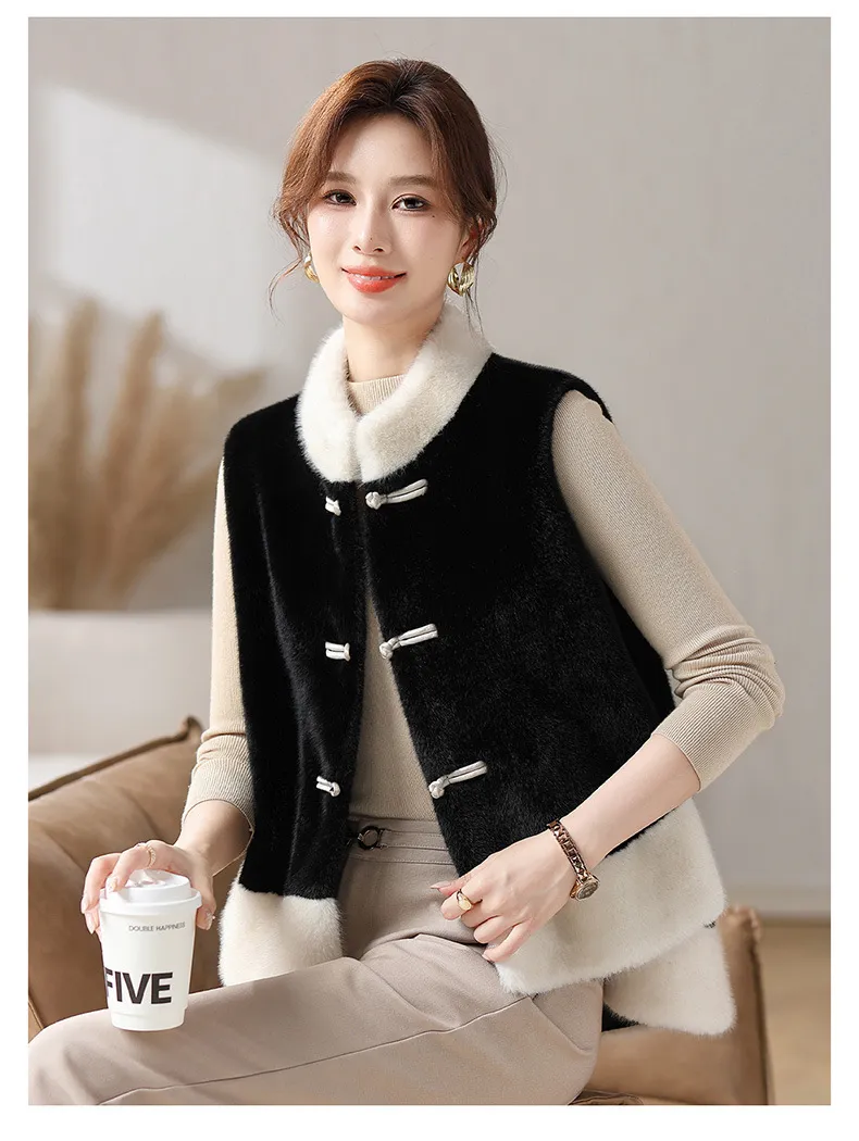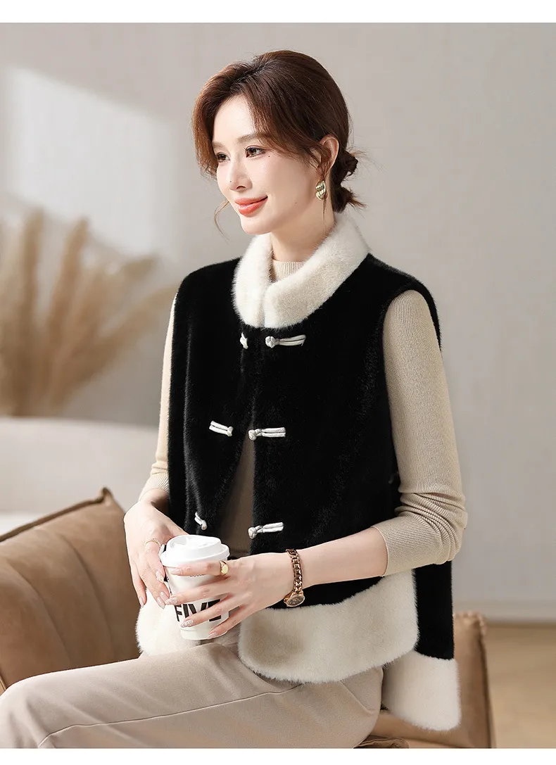 衣都精品- 新款仿水貂毛坎肩休閒短款馬甲外套