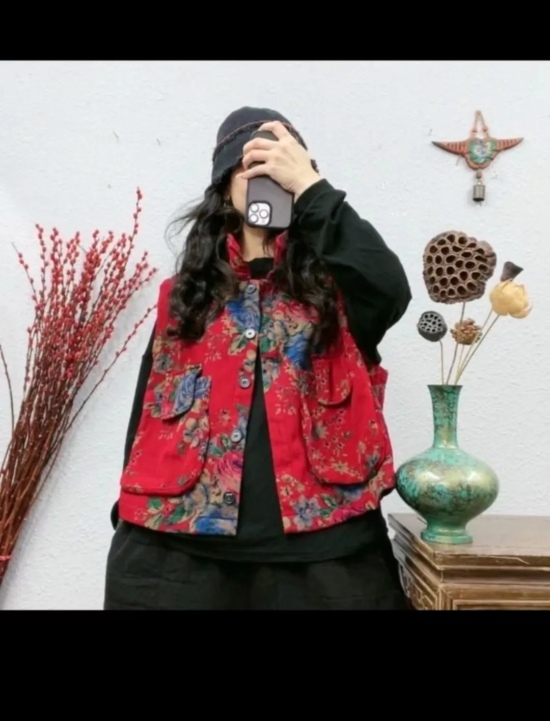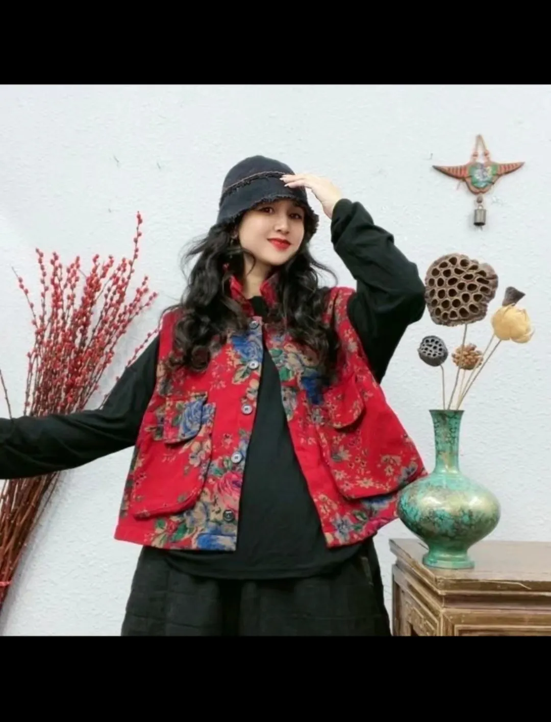 衣都精品- 新款民族風拼接印花夾棉保暖馬甲外套
