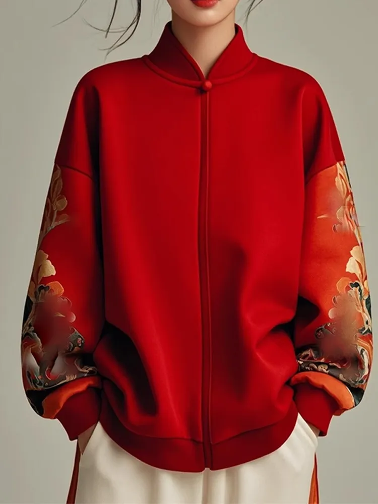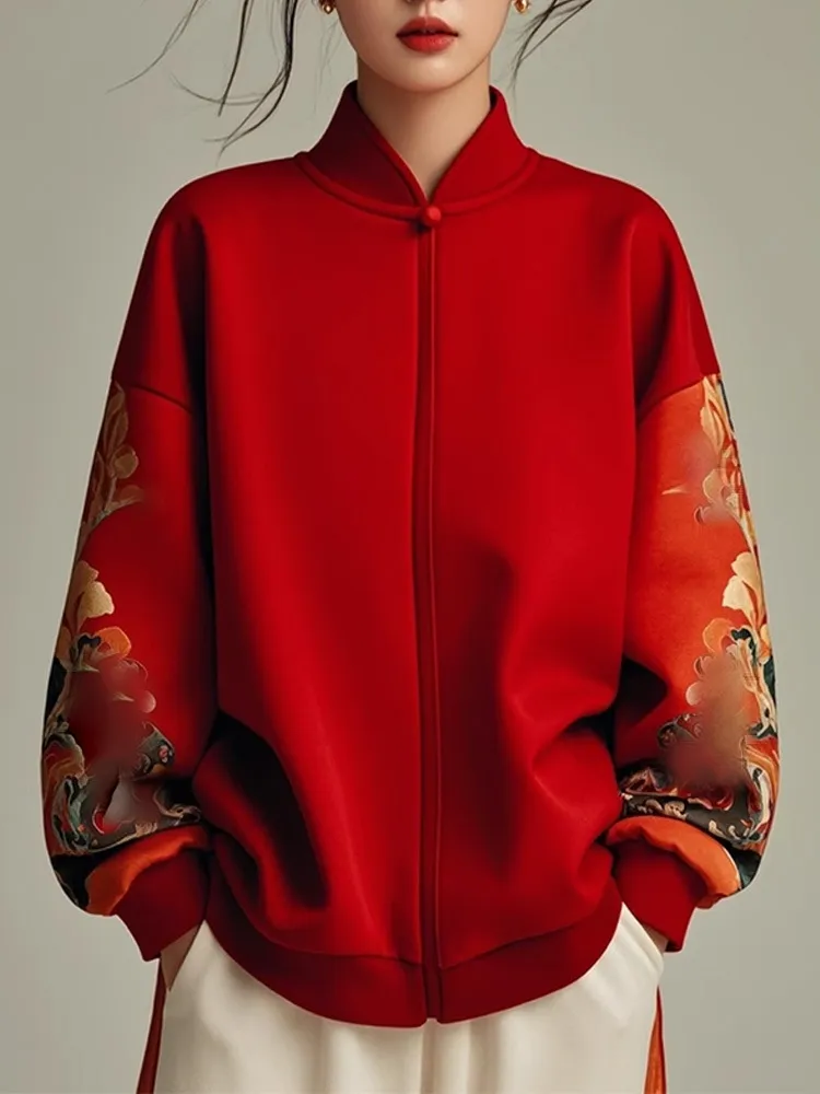衣都精品- 新款復古風東北大花寬鬆版立領外套