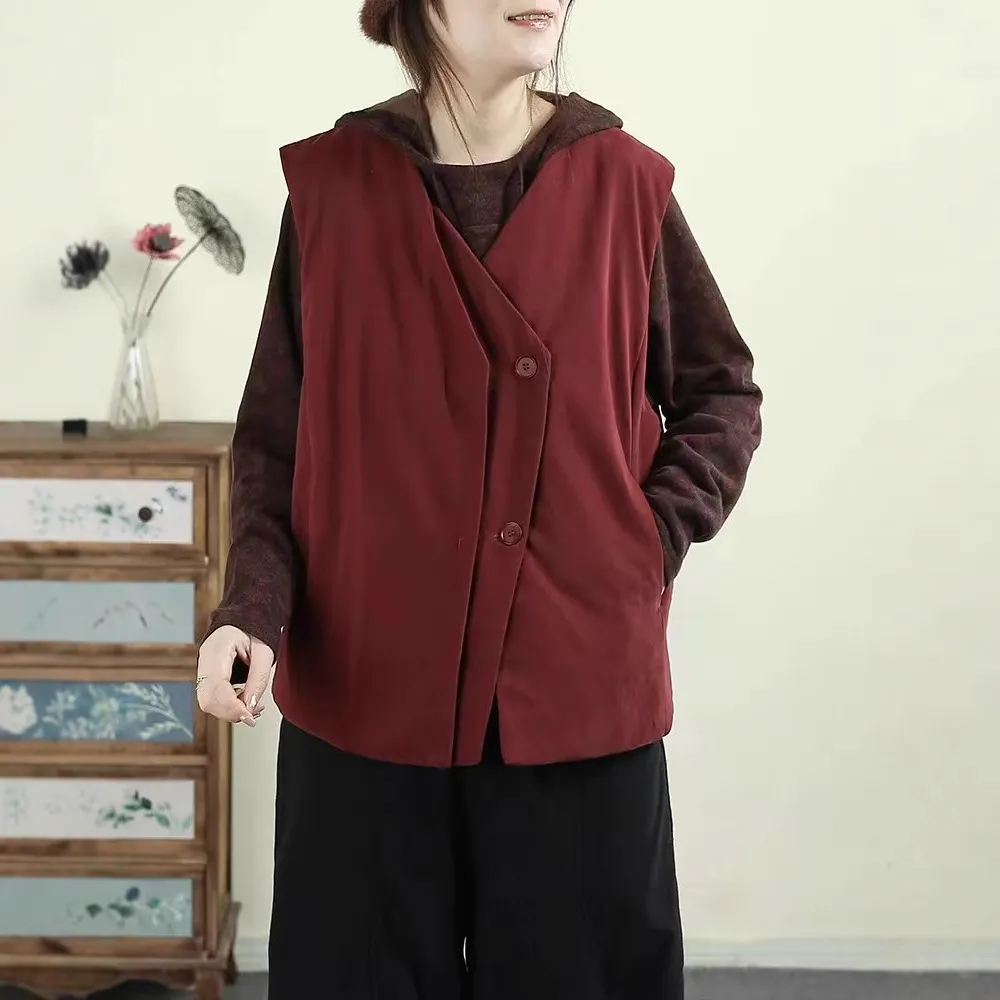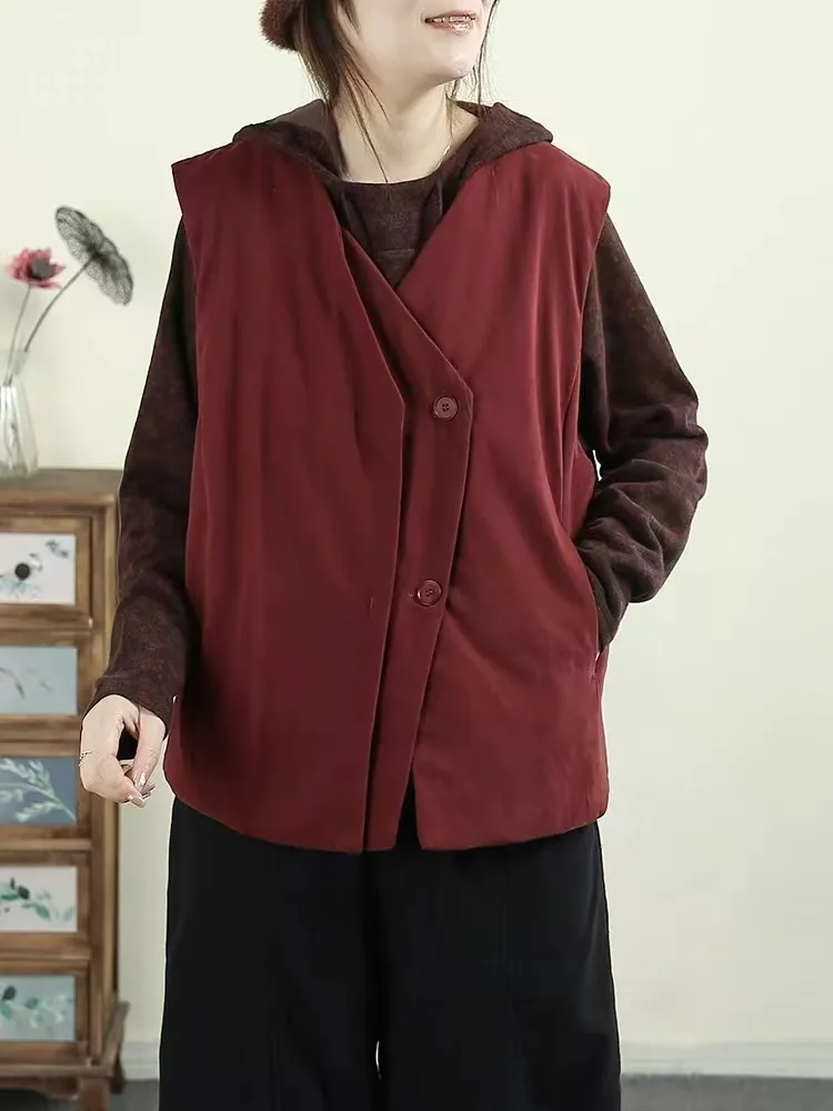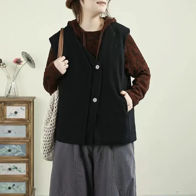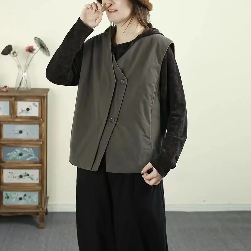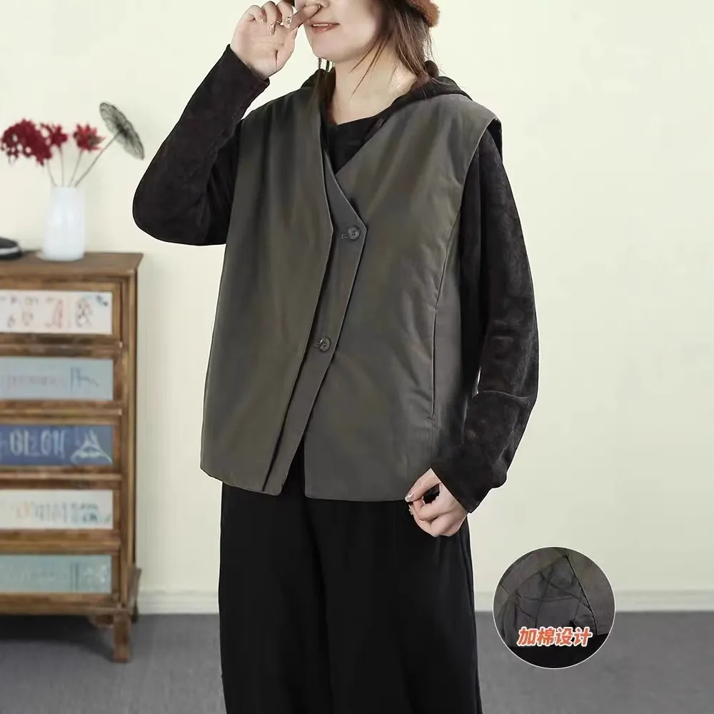 衣都精品- 新款日系風寬鬆夾棉V領馬甲外套