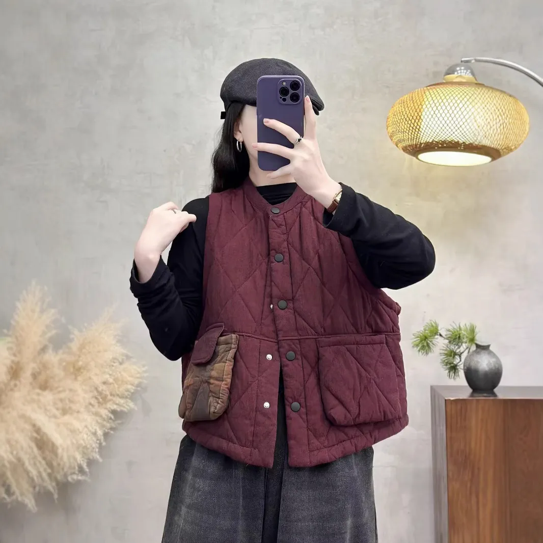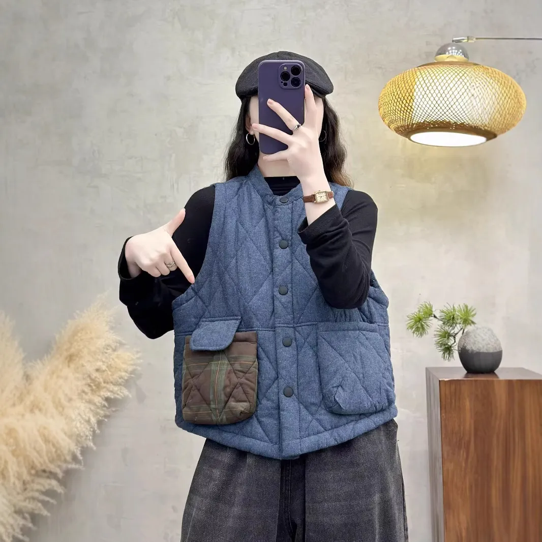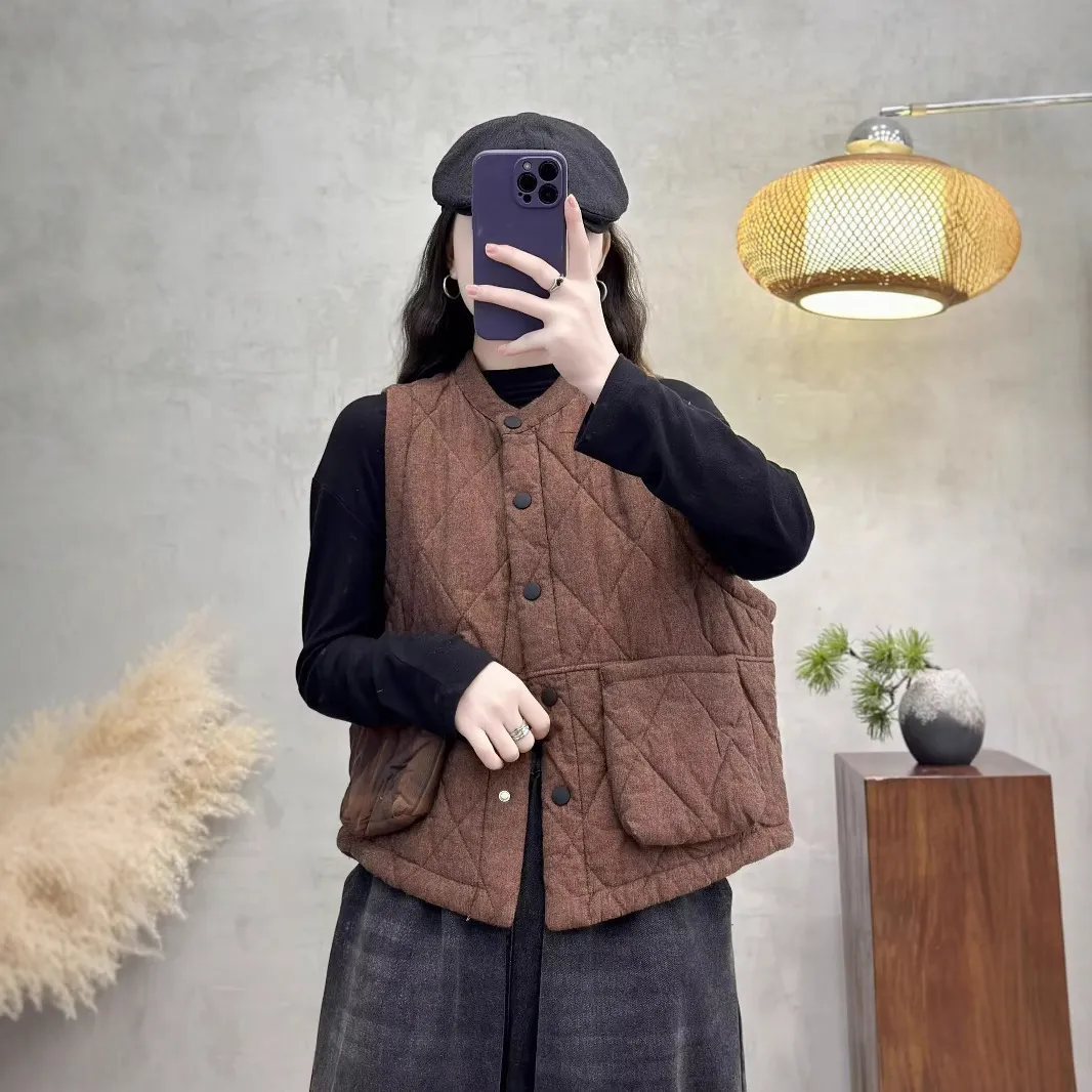 衣都精品- 新款日系風寬鬆夾棉V領馬甲外套