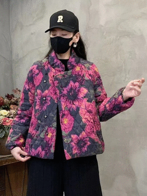 衣都精品- 新款寬鬆顯瘦大花棉襖加棉外套