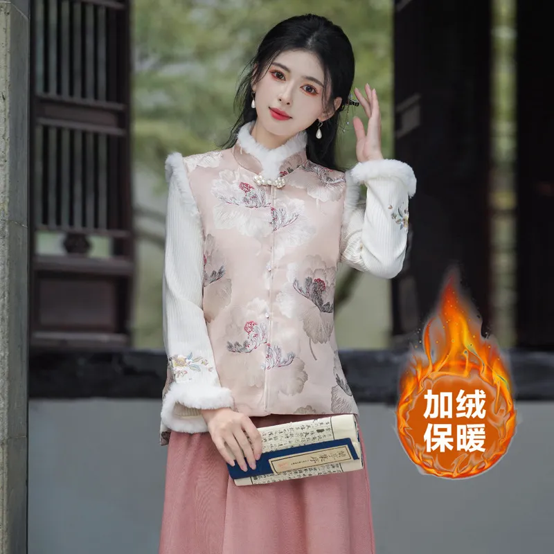 衣都精品- 新款中國風刺繡加絨保暖復古馬甲外套