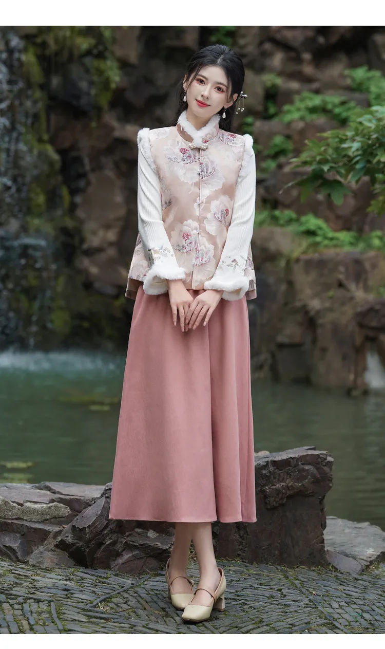 衣都精品- 新款中國風刺繡加絨保暖復古馬甲外套