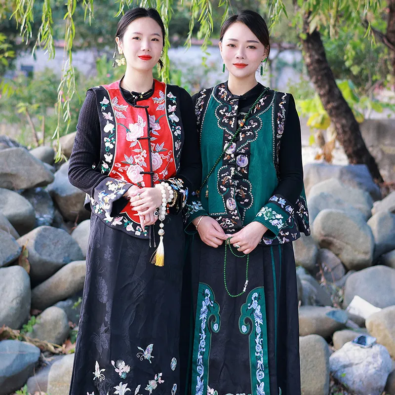 衣都精品- 新款中國風刺繡加絨保暖復古馬甲外套