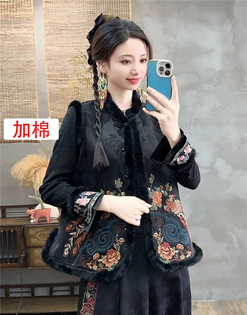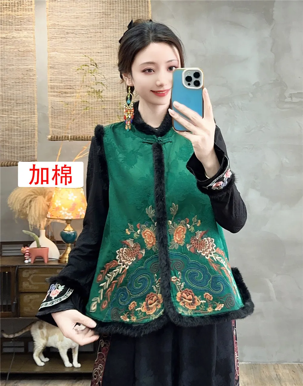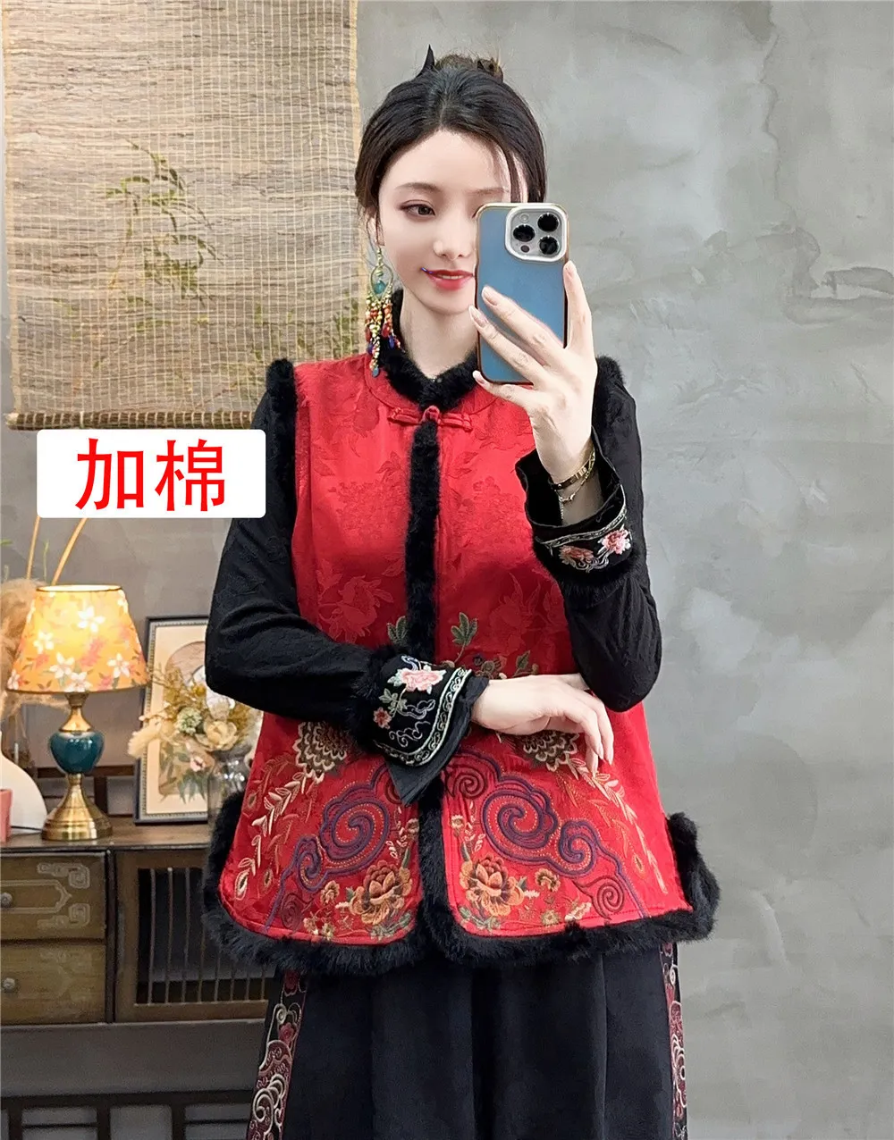 衣都精品- 新款復古中國風絲絨加棉馬甲外套