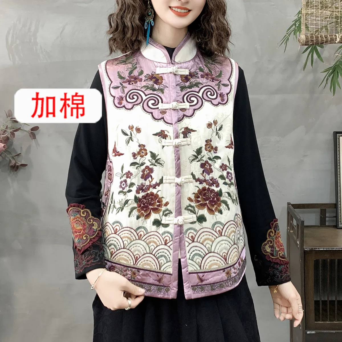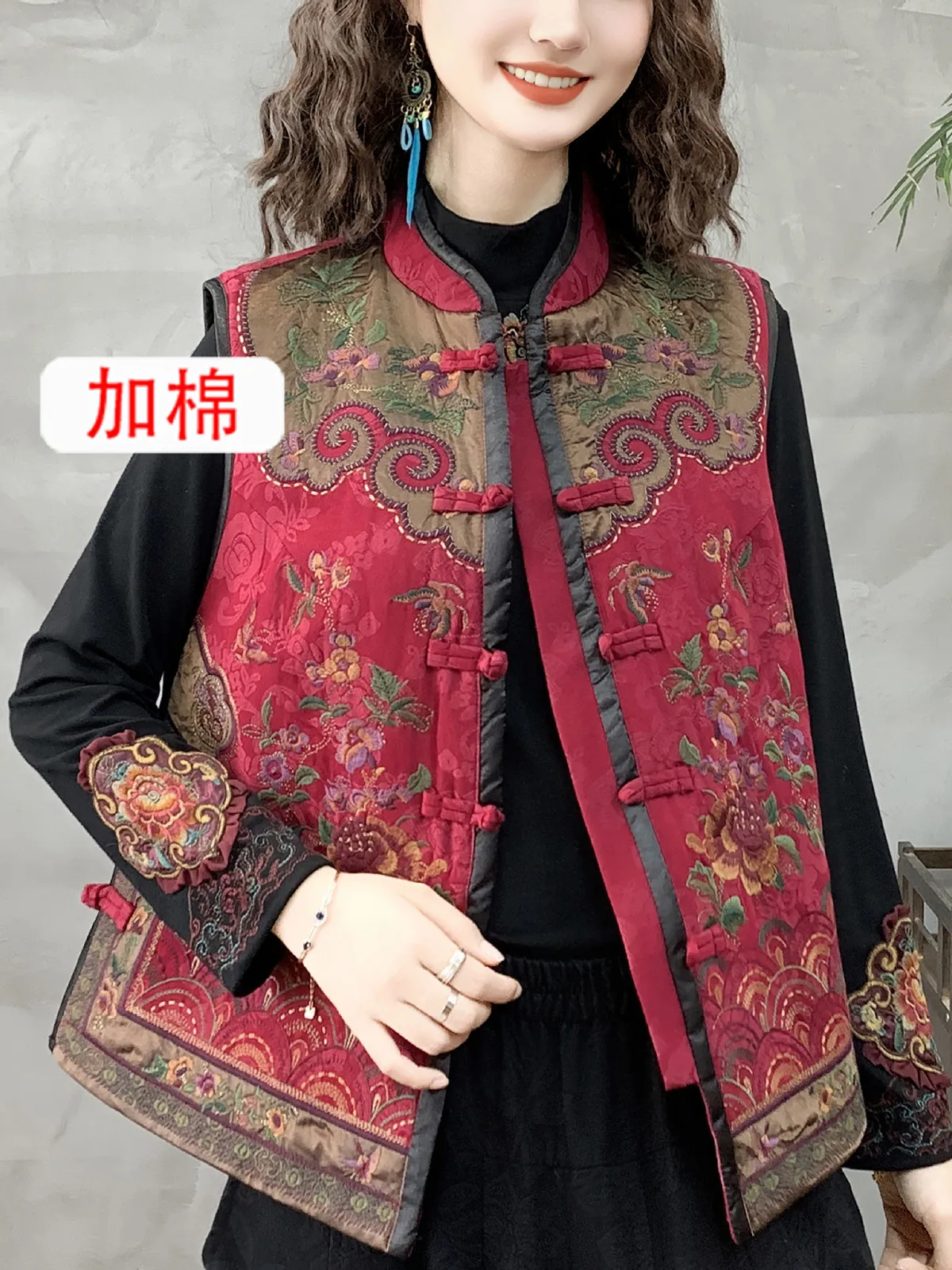 衣都精品- 新款民族風刺繡棉麻提花加棉馬甲外套