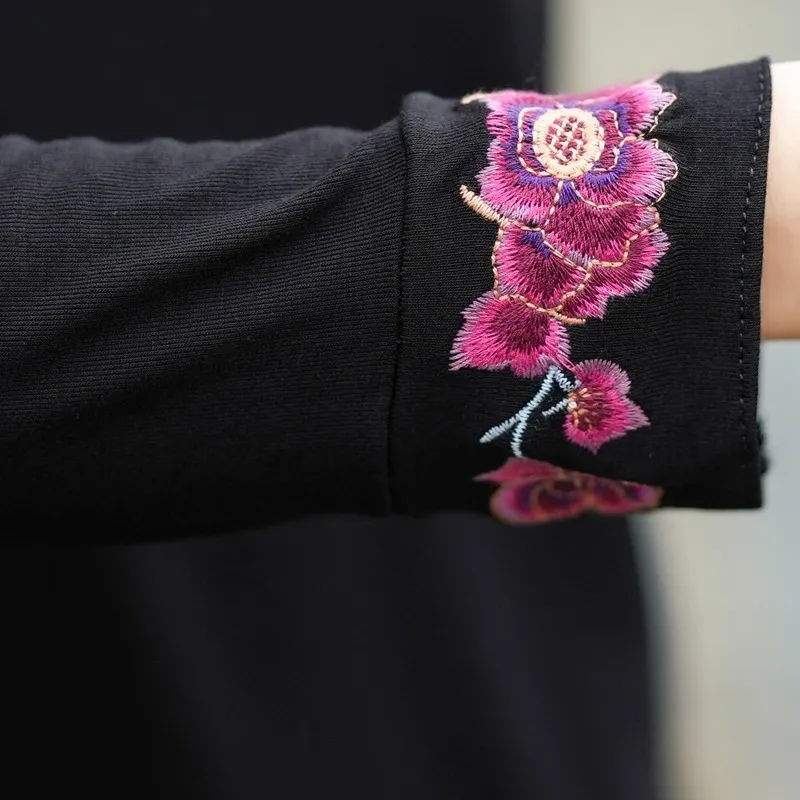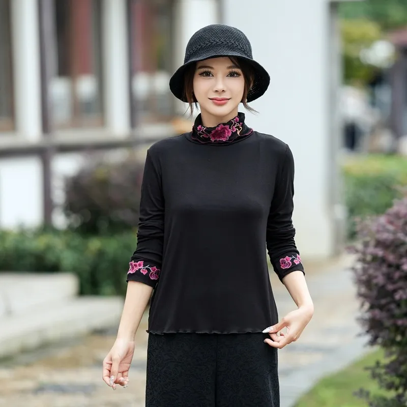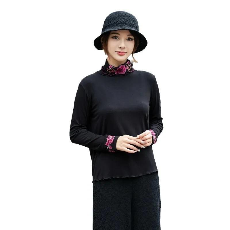 衣都精品- 新款復古內搭繡花長袖高領修身上衣