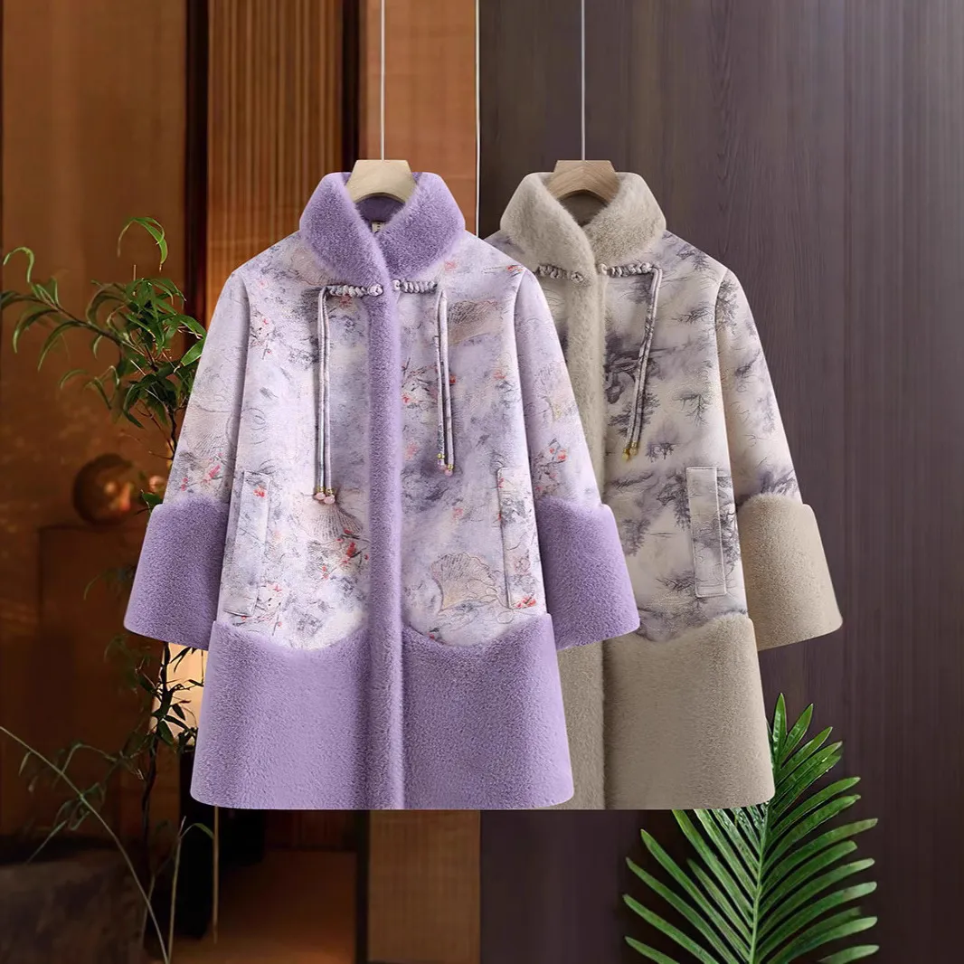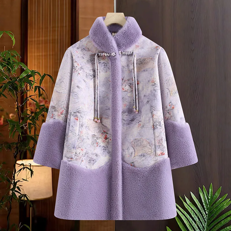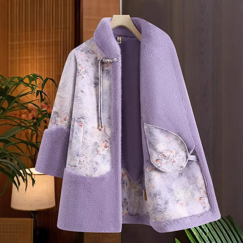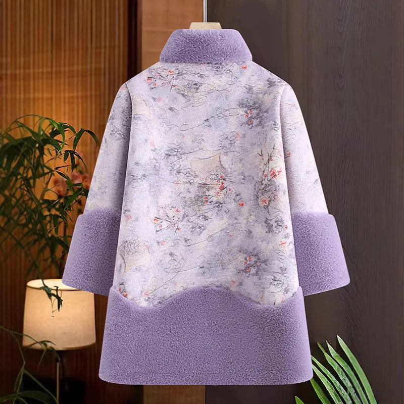 衣都精品- 新款復古斜襟提花加絨保暖氣質上衣