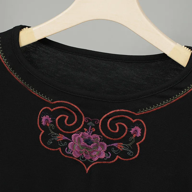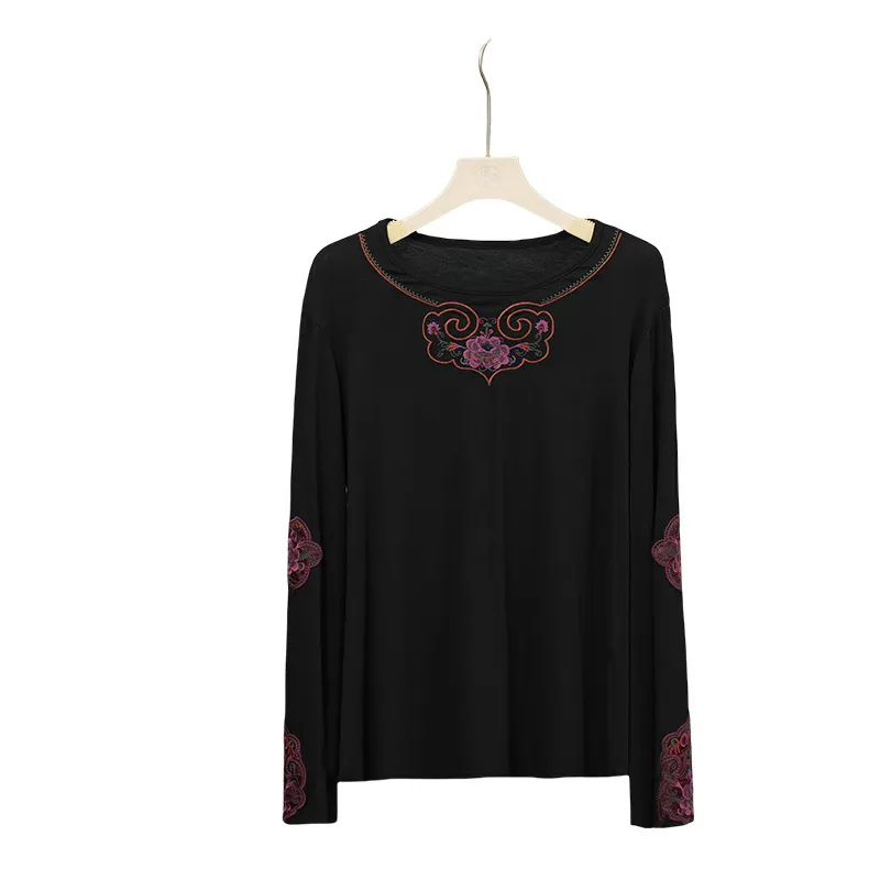 衣都精品- 新款文藝重工刺繡圓領長袖彈力上衣