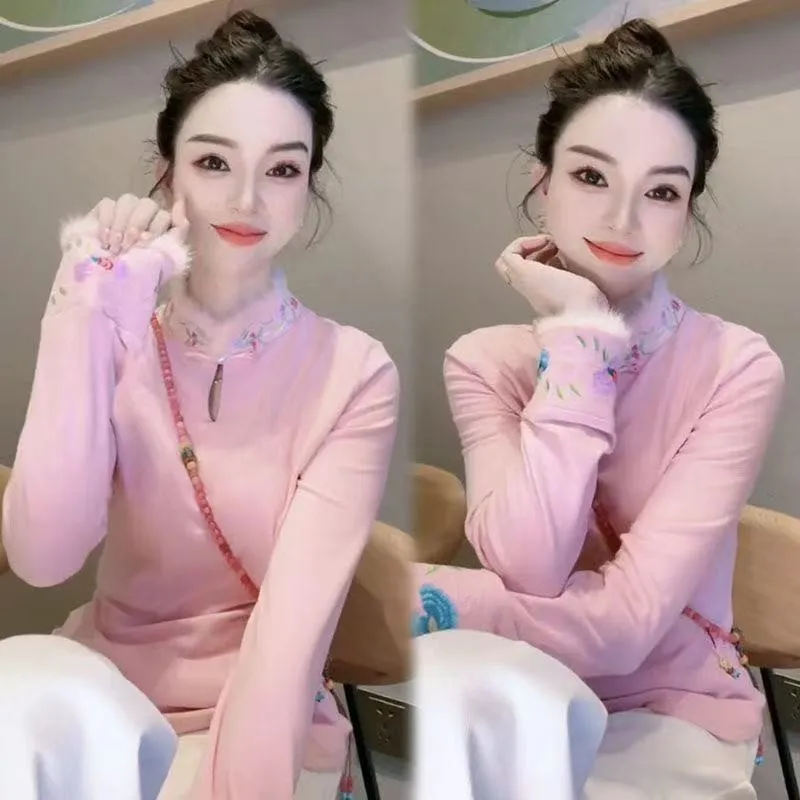 衣都精品- 新款民族風斜襟加絨長袖上衣
