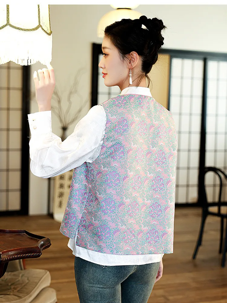 衣都精品- 新款圓領無袖復古中國風提花背心外套