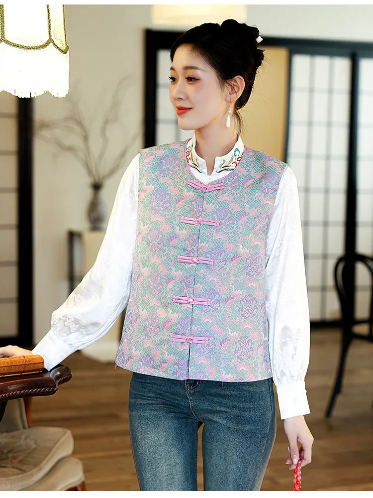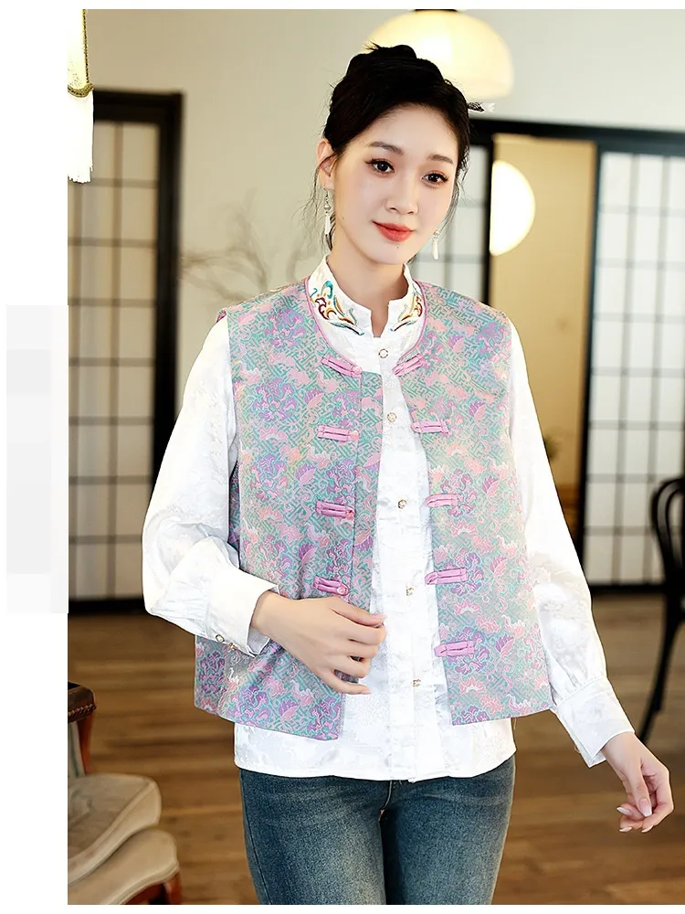 衣都精品- 新款復古重工刺繡盤扣馬甲背心