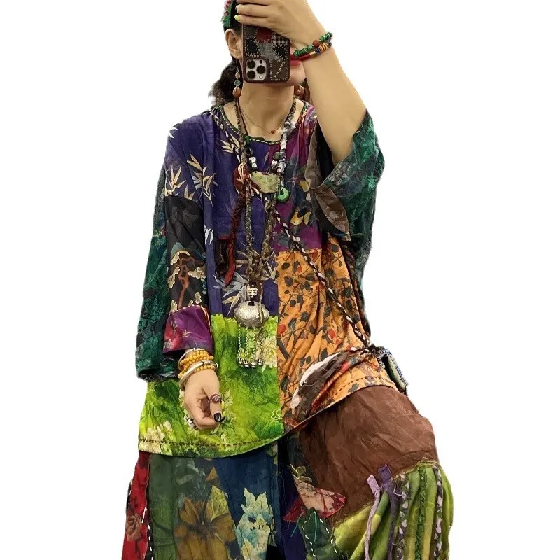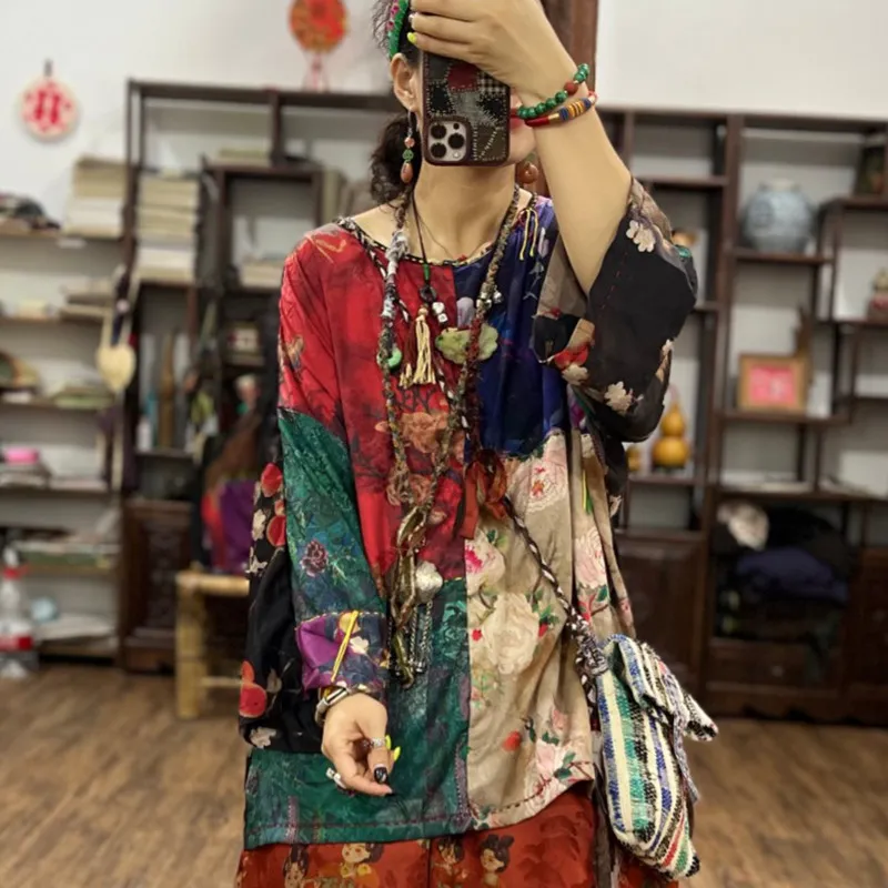 衣都精品- 新款圓領套頭寬鬆長袖撞色拼接上衣